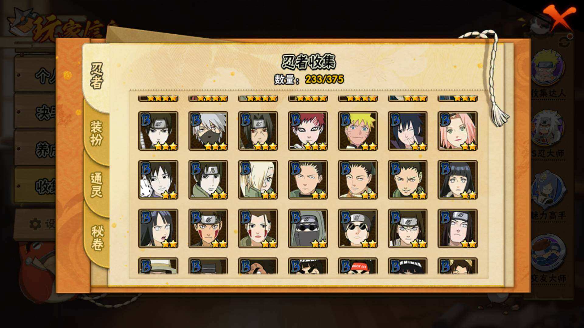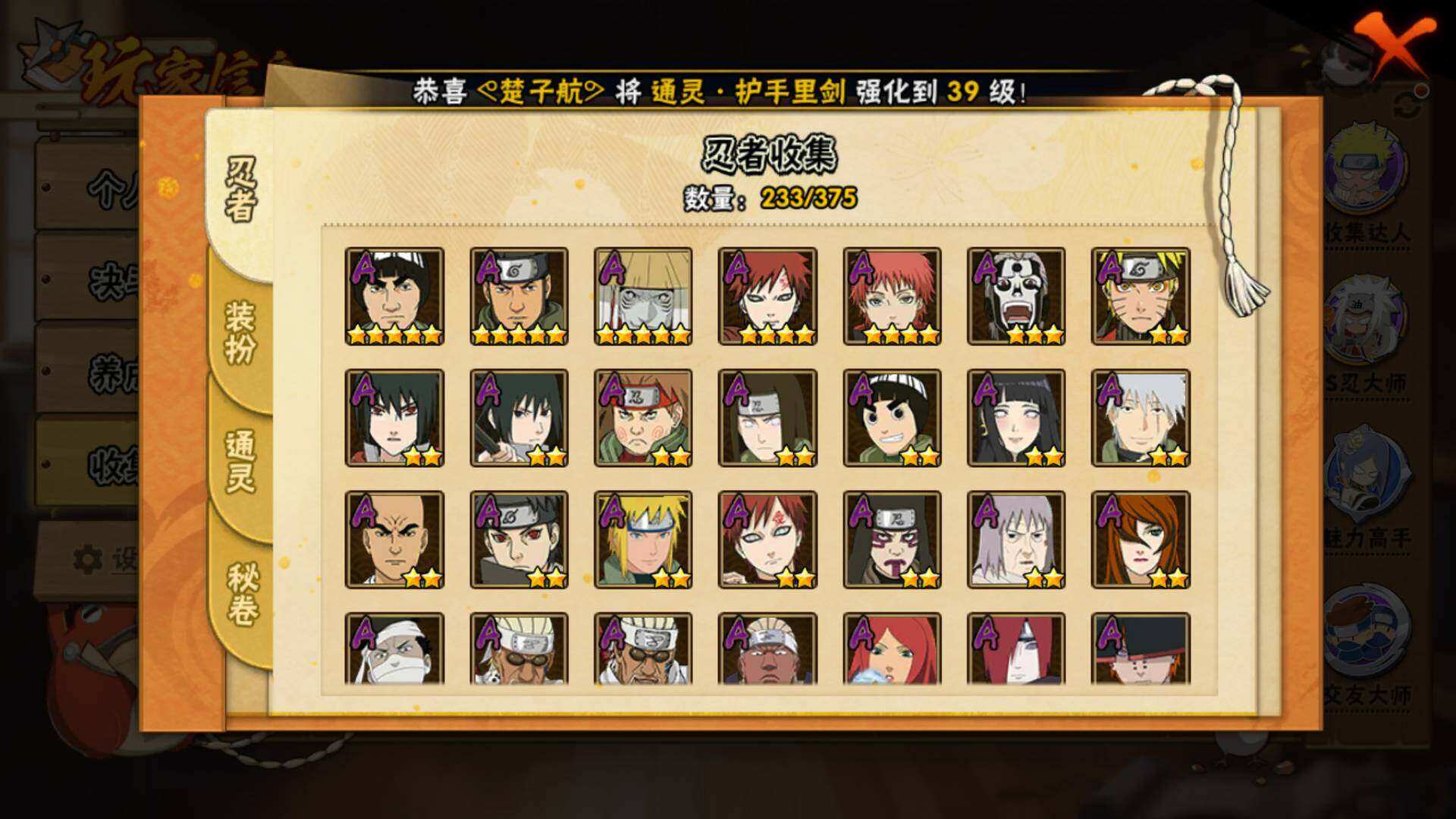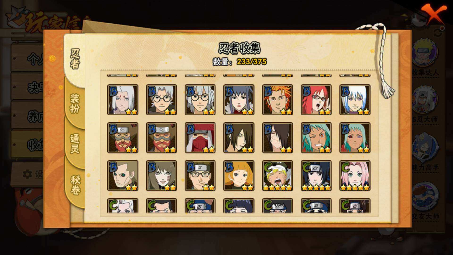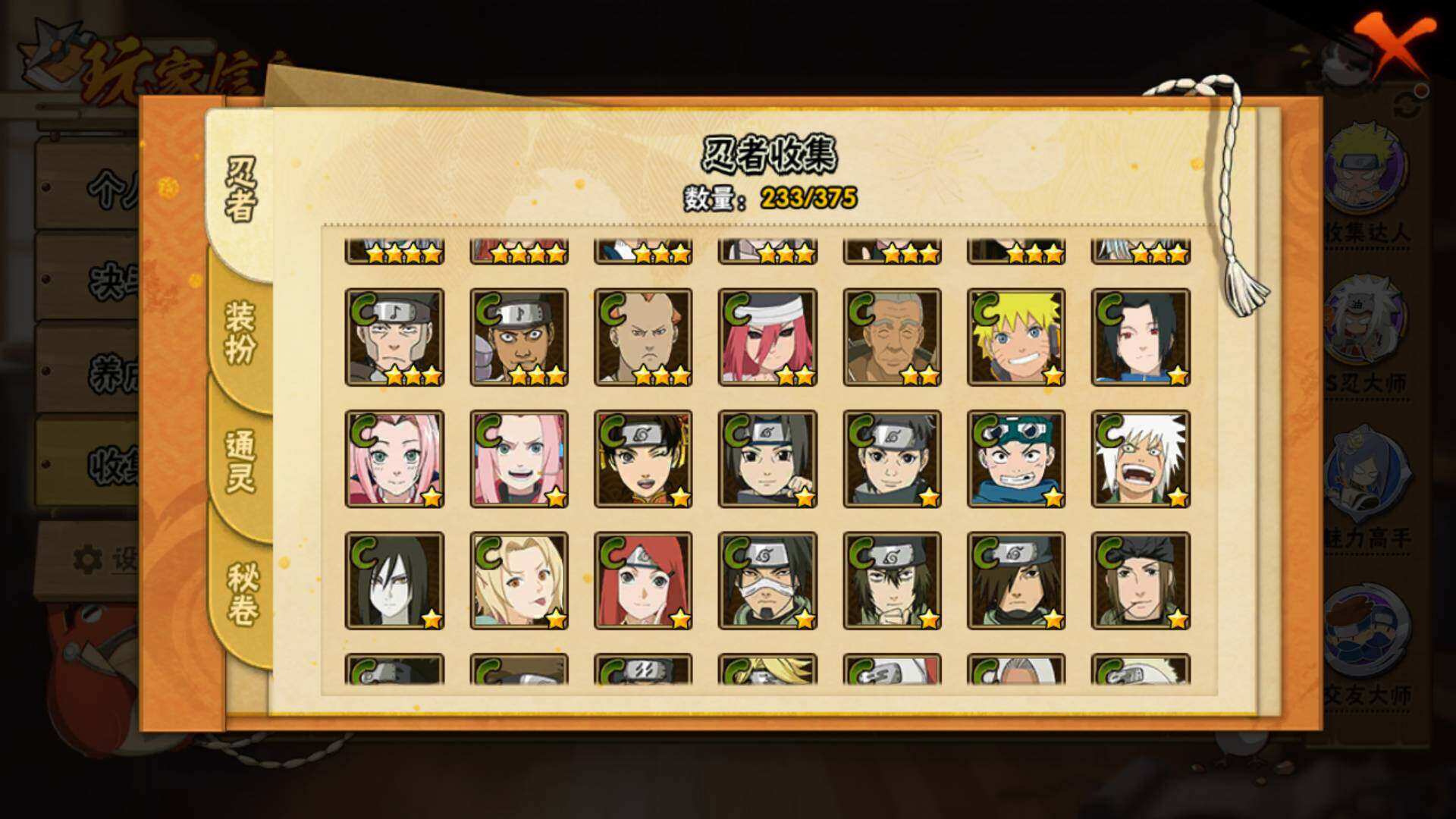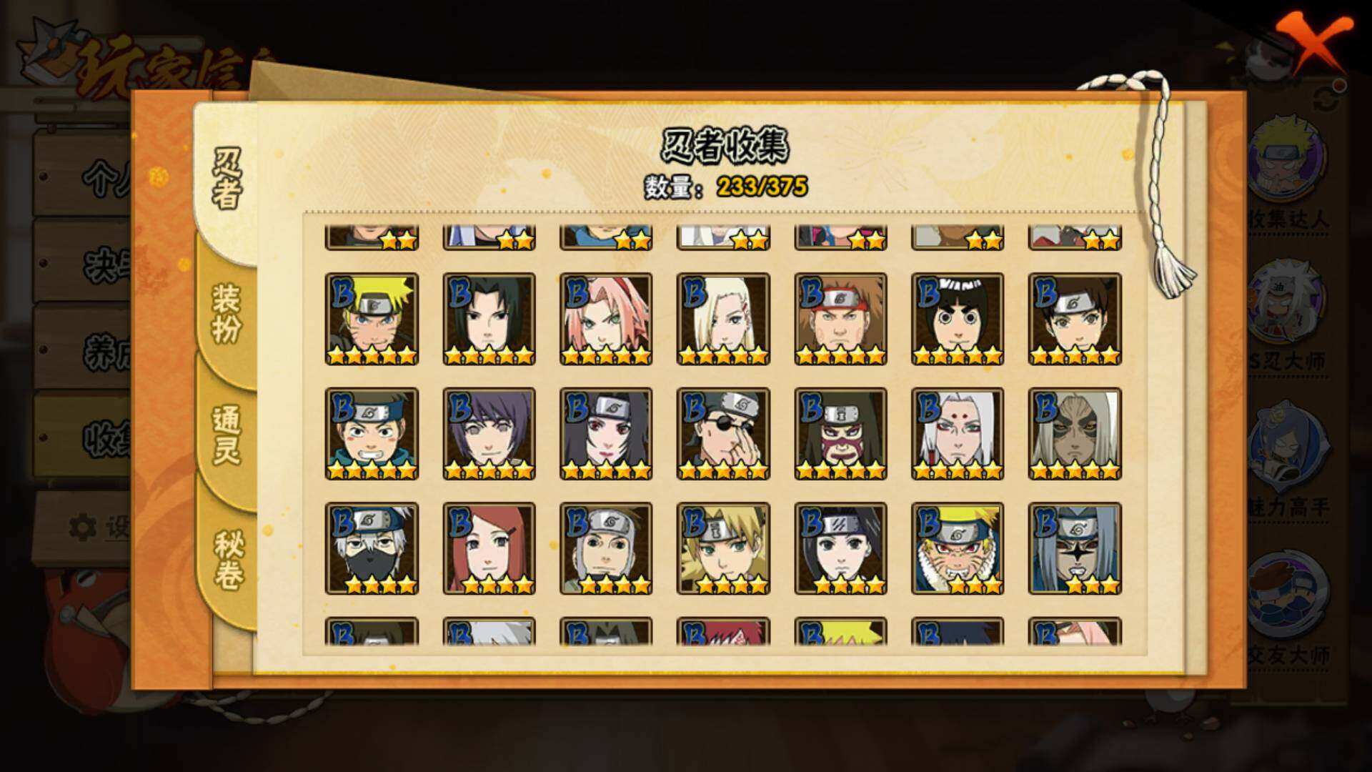 【S级忍者】:半藏「秽土转生」(3星),宇智波鼬「秽土转生」(3星),宇智波斑「秽土转生」(3星),宇智波斑「秽土转生·解」(3星),大野木「忍界大战」(3星),春野樱「忍界大战」(3星),宇智波带土「忍界大战」(3星),千手柱间「木叶创立」(3星),艾「三代目雷影」(3星),自来也「舞之豪