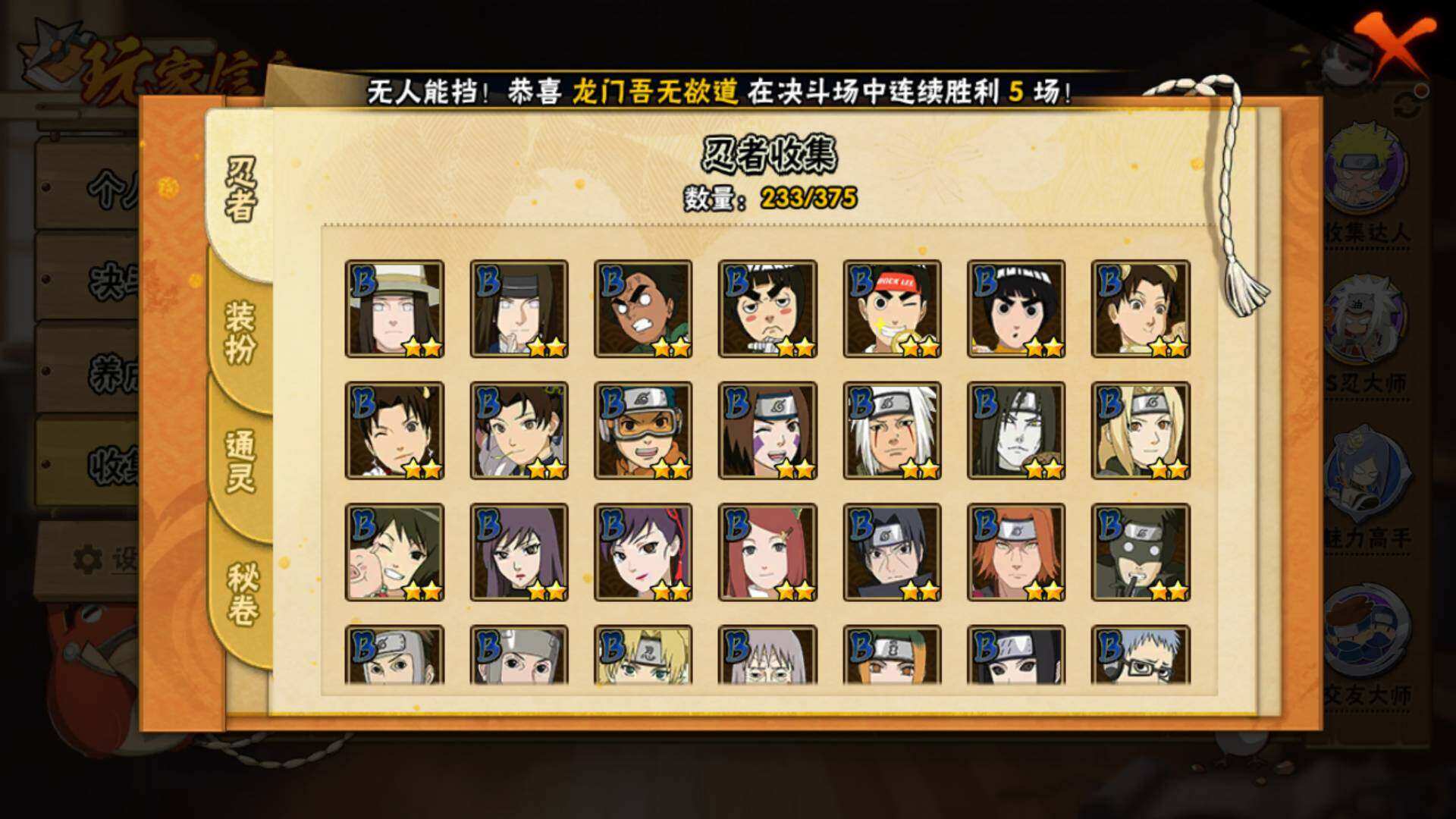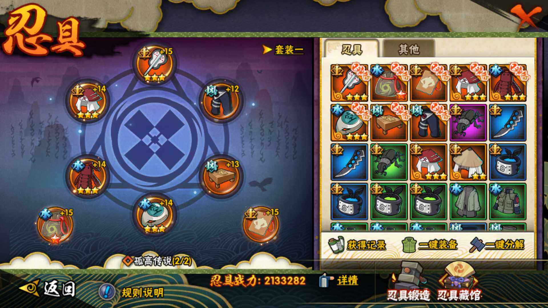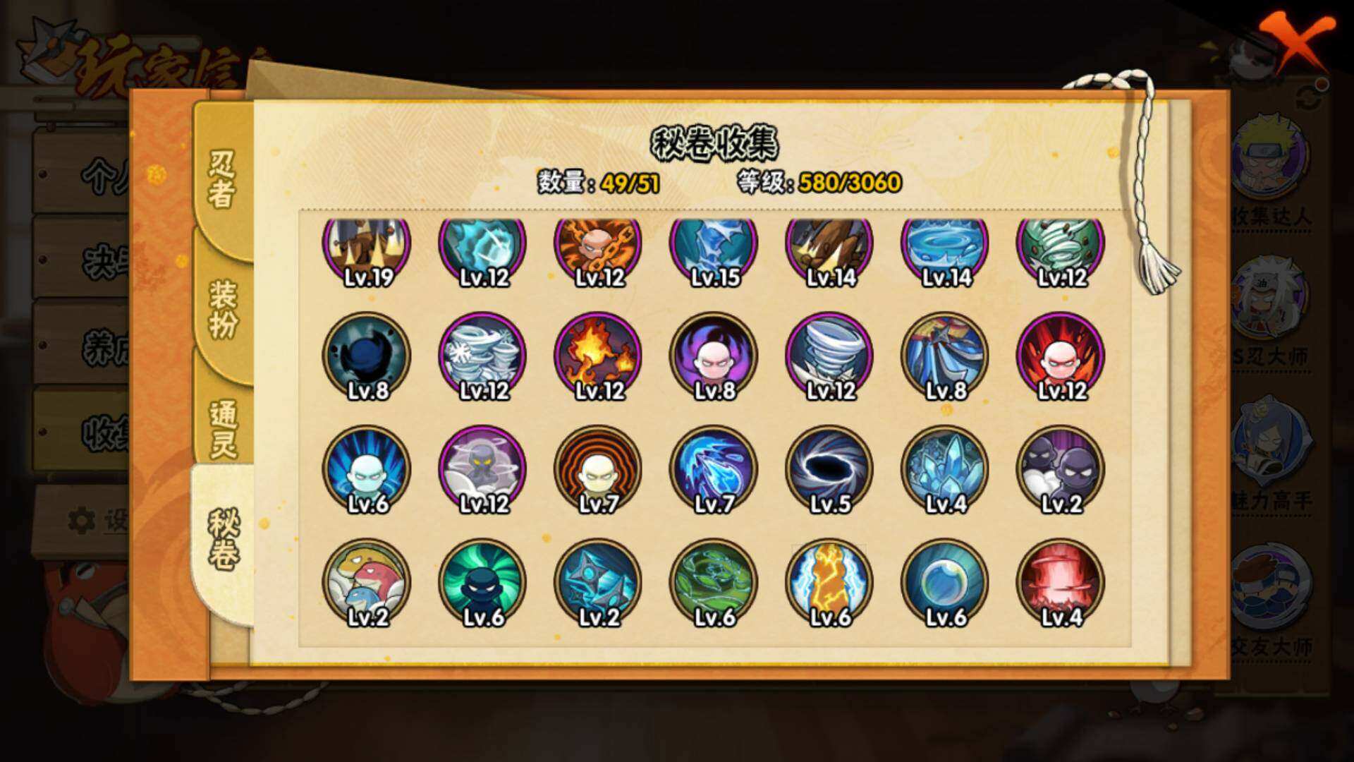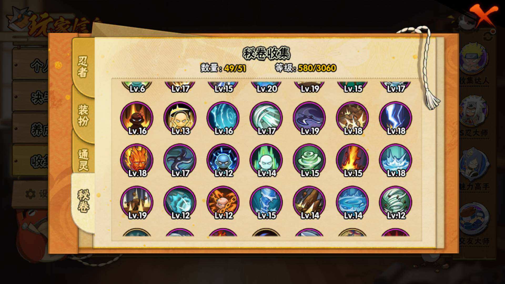 【S级忍者】:半藏「秽土转生」(3星),宇智波鼬「秽土转生」(3星),宇智波斑「秽土转生」(3星),宇智波斑「秽土转生·解」(3星),大野木「忍界大战」(3星),春野樱「忍界大战」(3星),宇智波带土「忍界大战」(3星),千手柱间「木叶创立」(3星),艾「三代目雷影」(3星),自来也「舞之豪