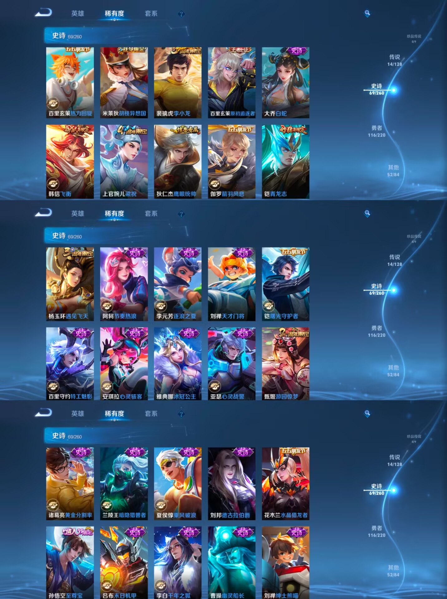 【史诗皮肤】 星界战将 鸭鸭历险记 飞衡 敬我三分 青龙志 浮光幕影 电玩小子 至尊宝 孙行者 地狱燃心 山海·玄木吟 青焰无极 浮光幕影 夏日便利店 聚星闪耀 江河有灵 布丁狗之约 谧流熔炉 百相守