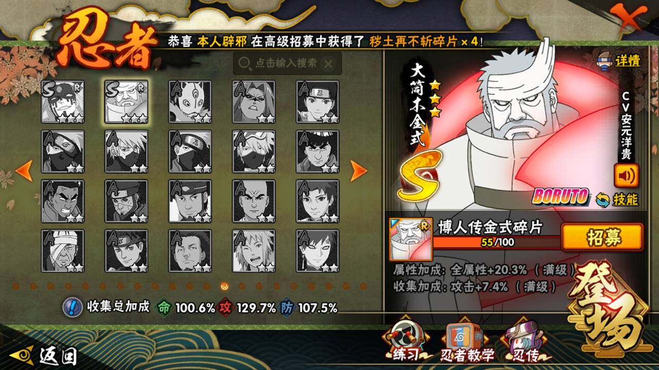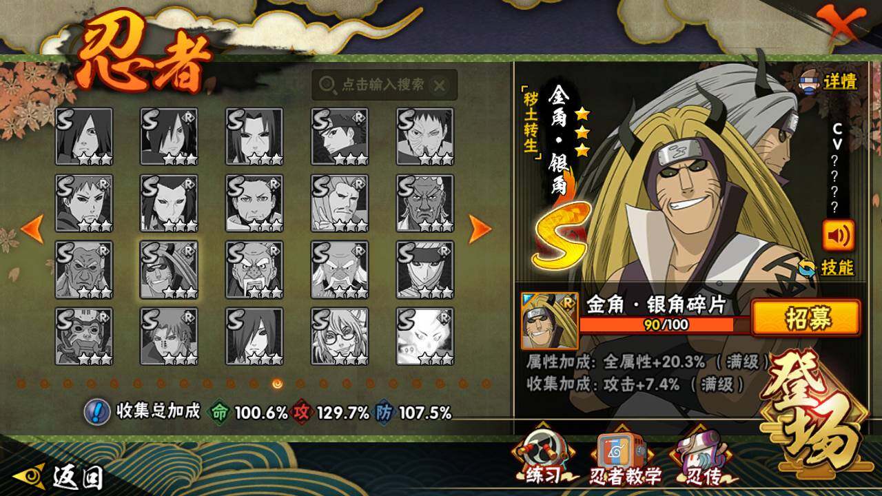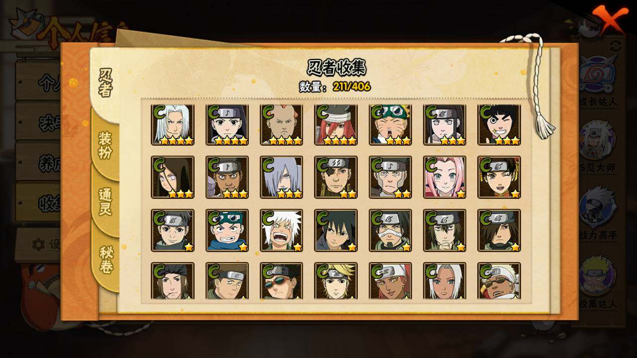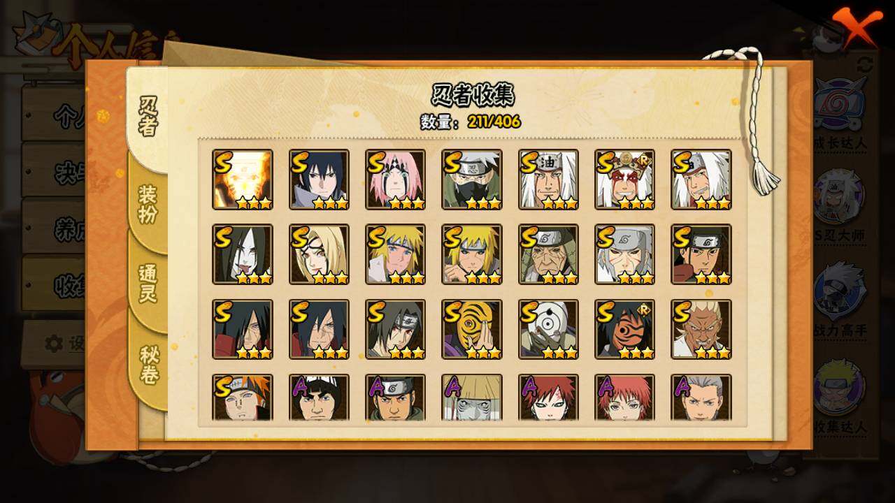 【S级忍者】:猿飞日斩「秽土转生」(3星),波风水门「秽土转生」(3星),千手扉间「秽土转生」(3星),宇智波斑「秽土转生」(3星),宇智波斑「秽土转生·解」(3星),春野樱「忍界大战」(3星),艾「忍界大战」(3星),宇智波鼬「须佐能乎」(3星),旗木卡卡西「须佐能乎