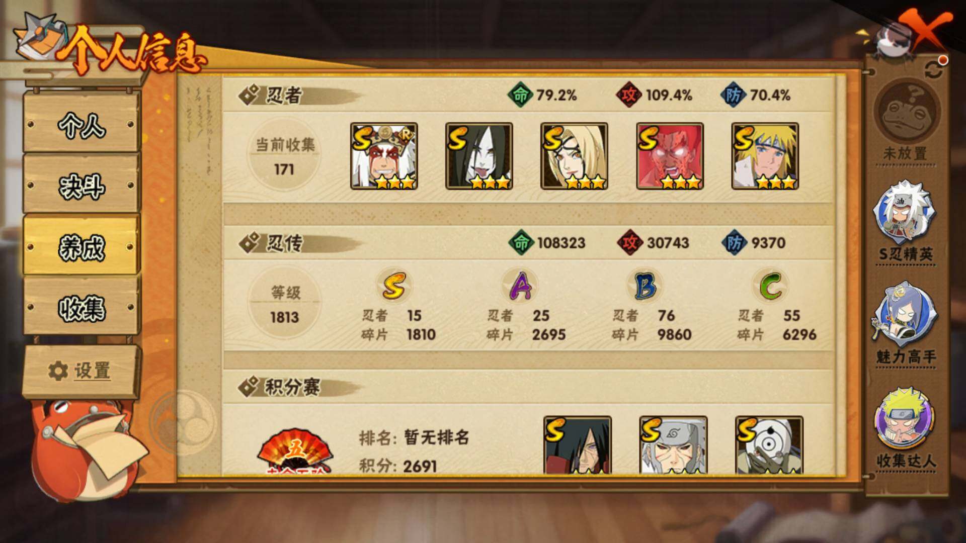 V1 757万战力 15S级忍者数-25A级忍者数 LL5232【S级忍者】