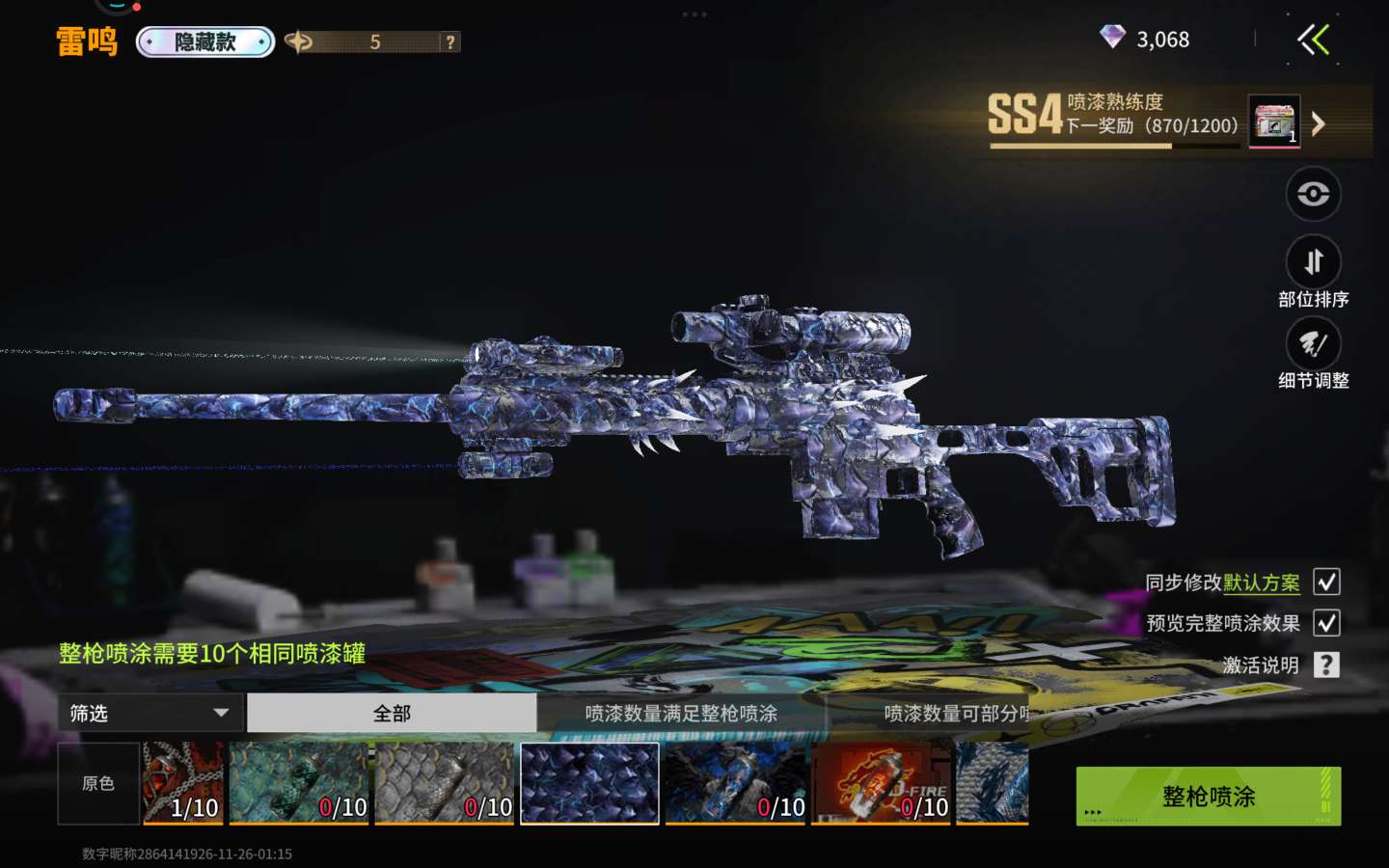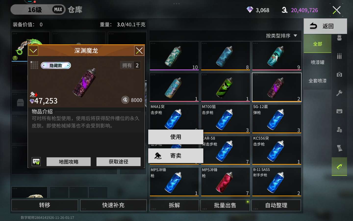 雷鸣大狙13罐满喷,宠物满级,除了熊猫没有做其他都满了背包还有二罐魔龙