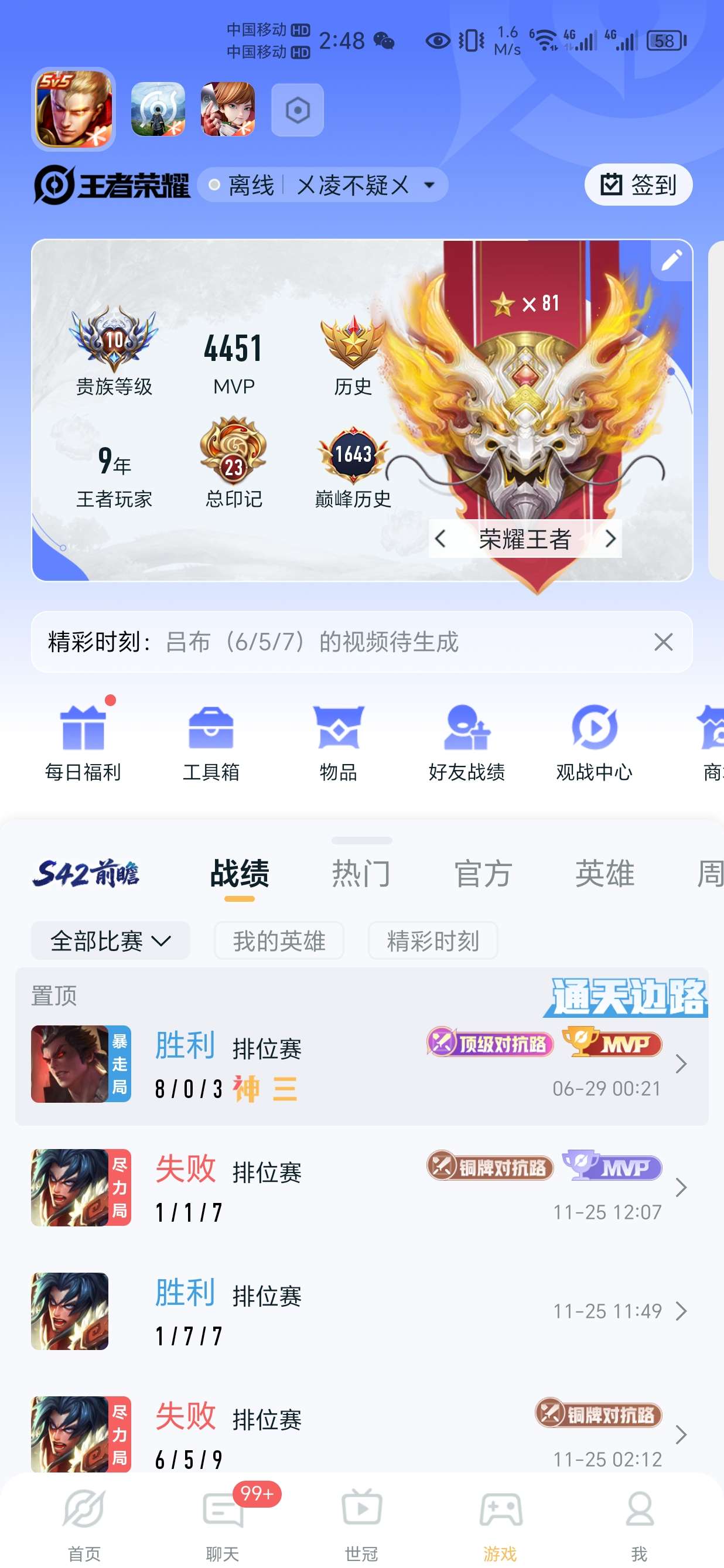 【王者荣耀】用户985*****4