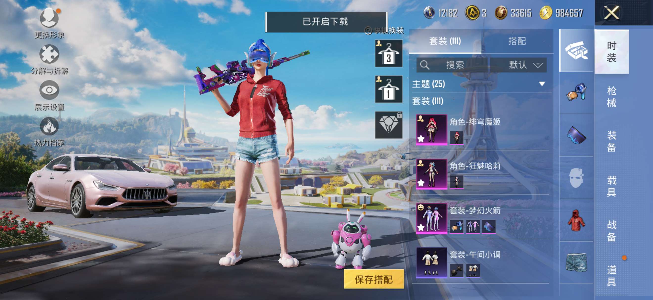 4辆车 火箭少女 死噶头发 小丑女主套背包头盔 高kd数据号
