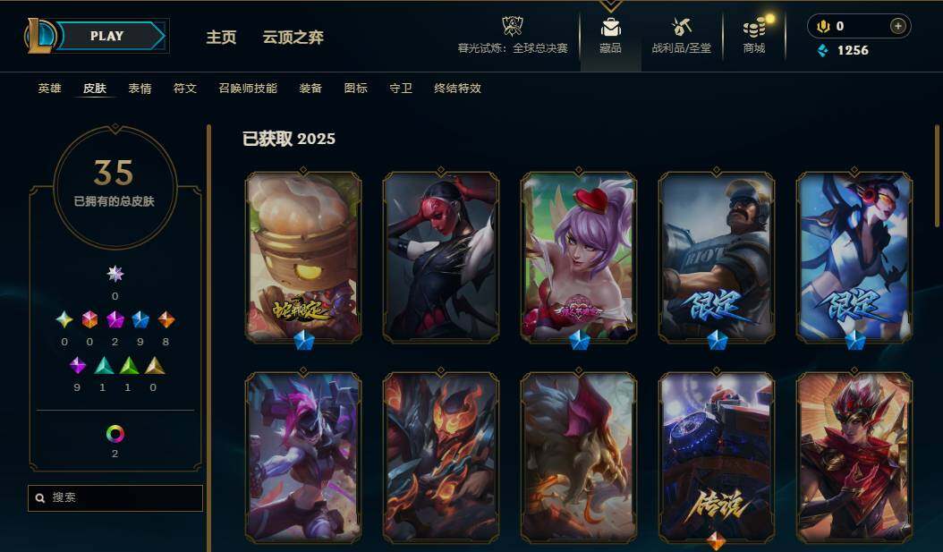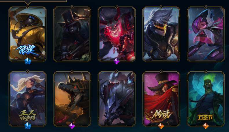 110英雄/55皮肤/2神话/9限定/1臻彩/4炫彩/8传说/9史诗/未定级/