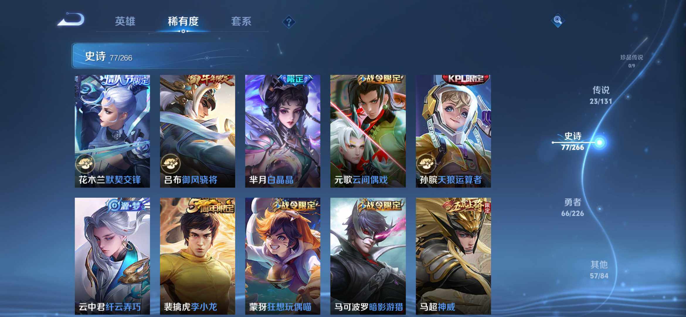 【神奇女侠 至尊宝 李逍遥 白虎志 天魔缭乱 神威 龙胆 武圣 烈魂 精品23传说号】安卓Q-V8-126英雄-224皮肤-1典藏-0珍品无双-0无双-0珍品传说-23传说-76史诗