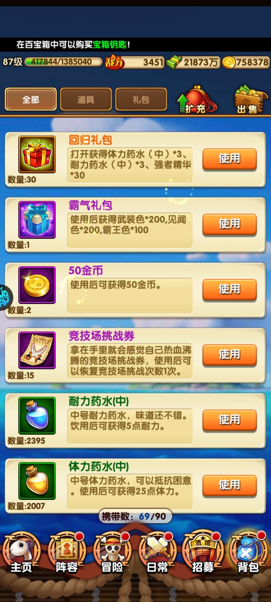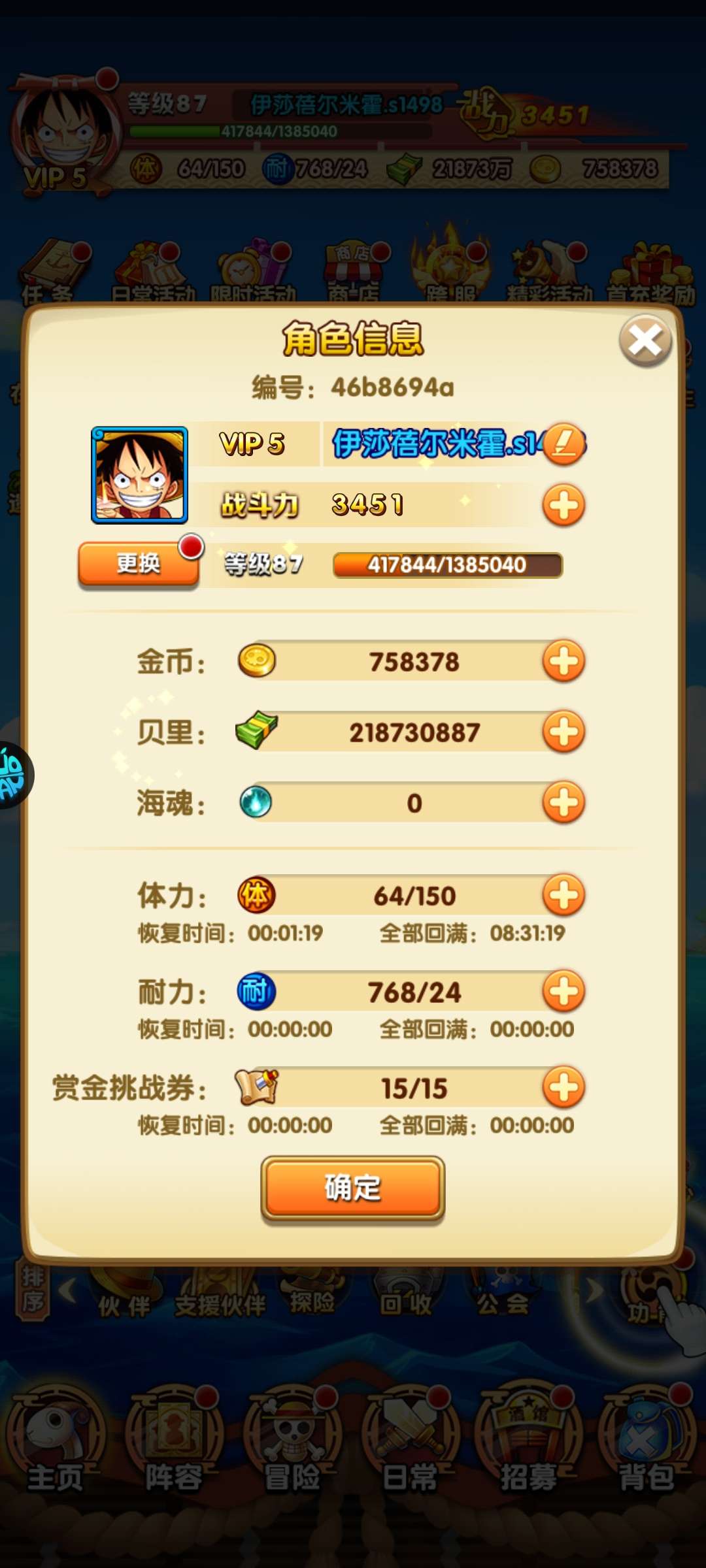 航海王强者之路【安卓果盘】v5单人金卡自选75w金币