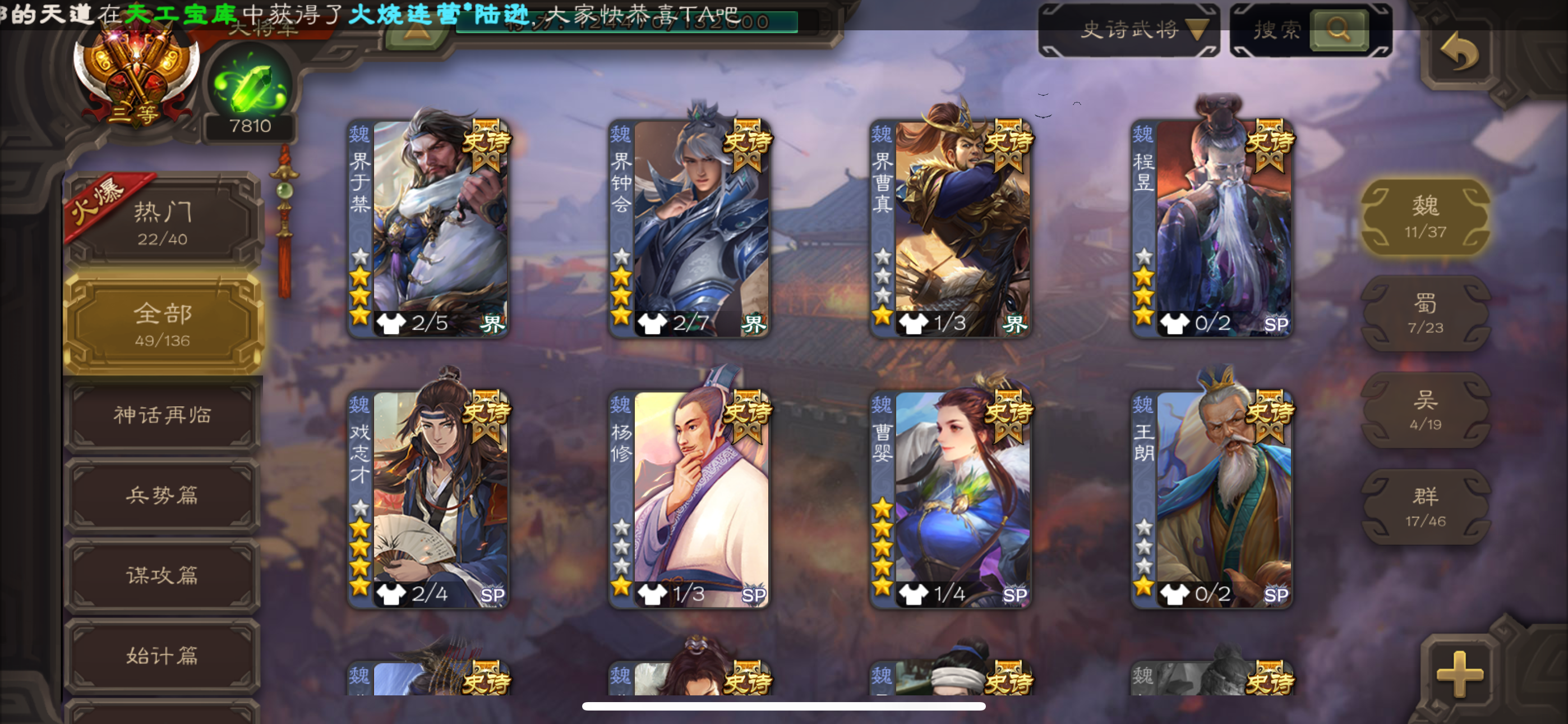 神曹操,刘焉,火龙果,许攸,界徐盛一堆权一,号上还有4w多羽毛想要哪个史诗皮肤自己换,将魂还有7k多半价随便换宝珠将