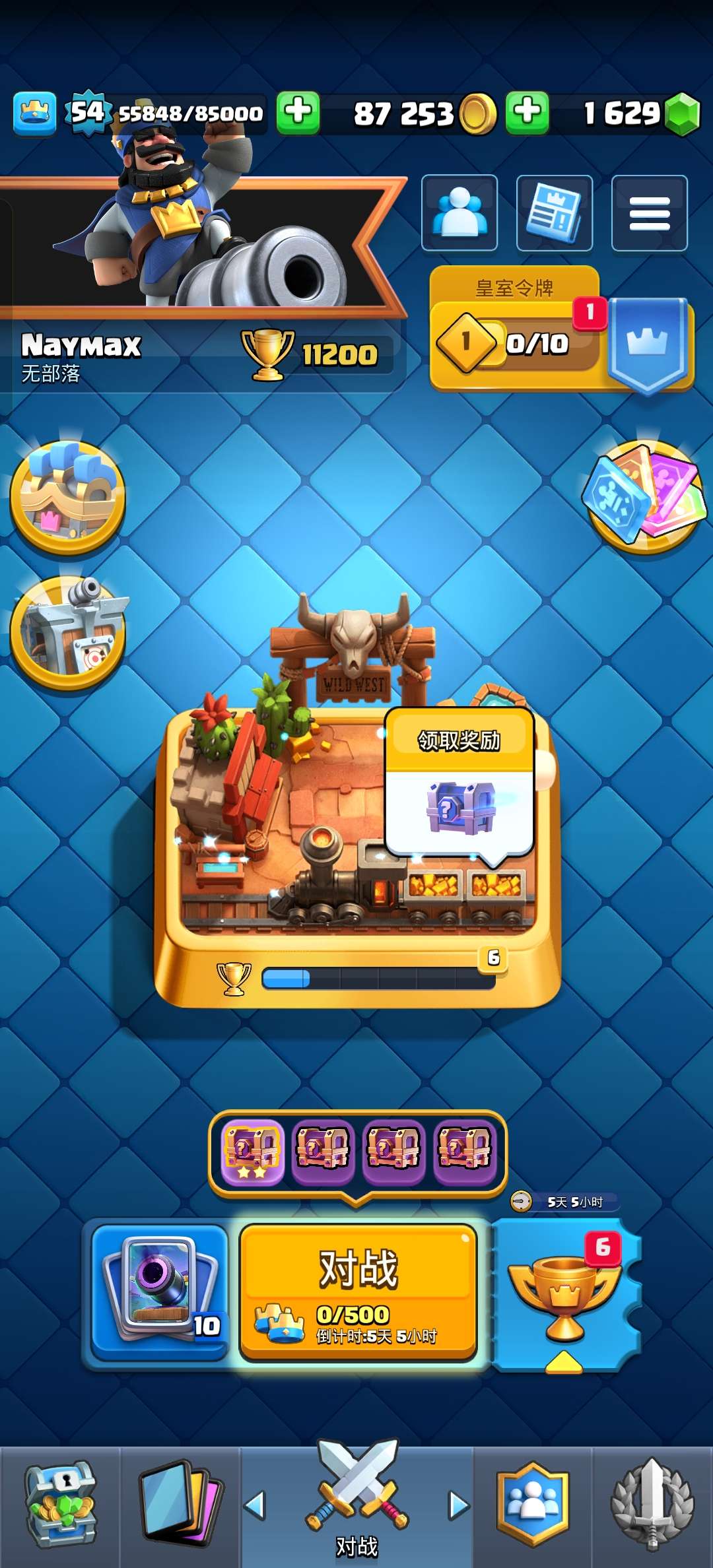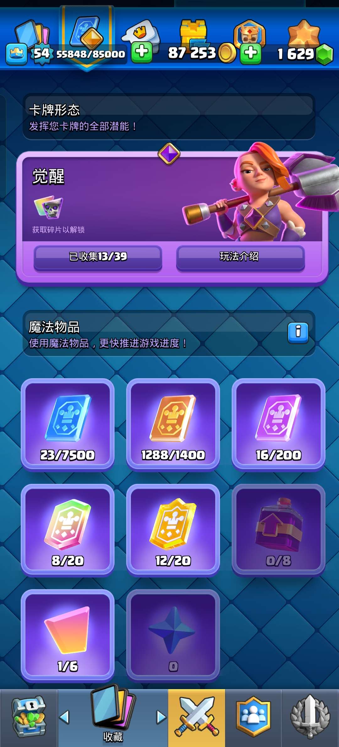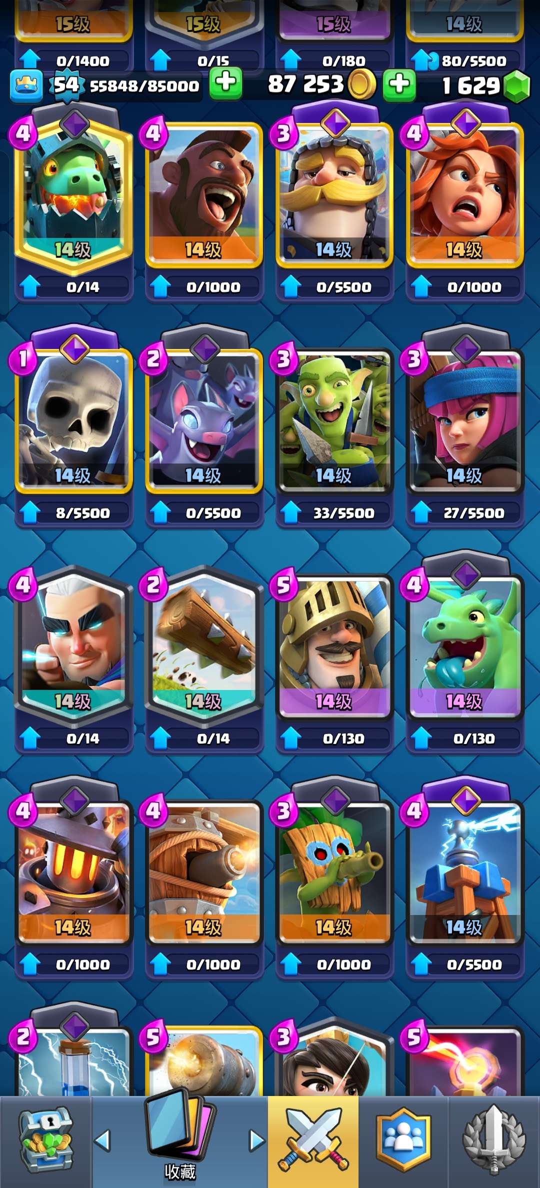 皇室战争国际服54级1.1万杯 7张/15级+19张/14级+13觉醒62表情 6塔皮 可换邮箱