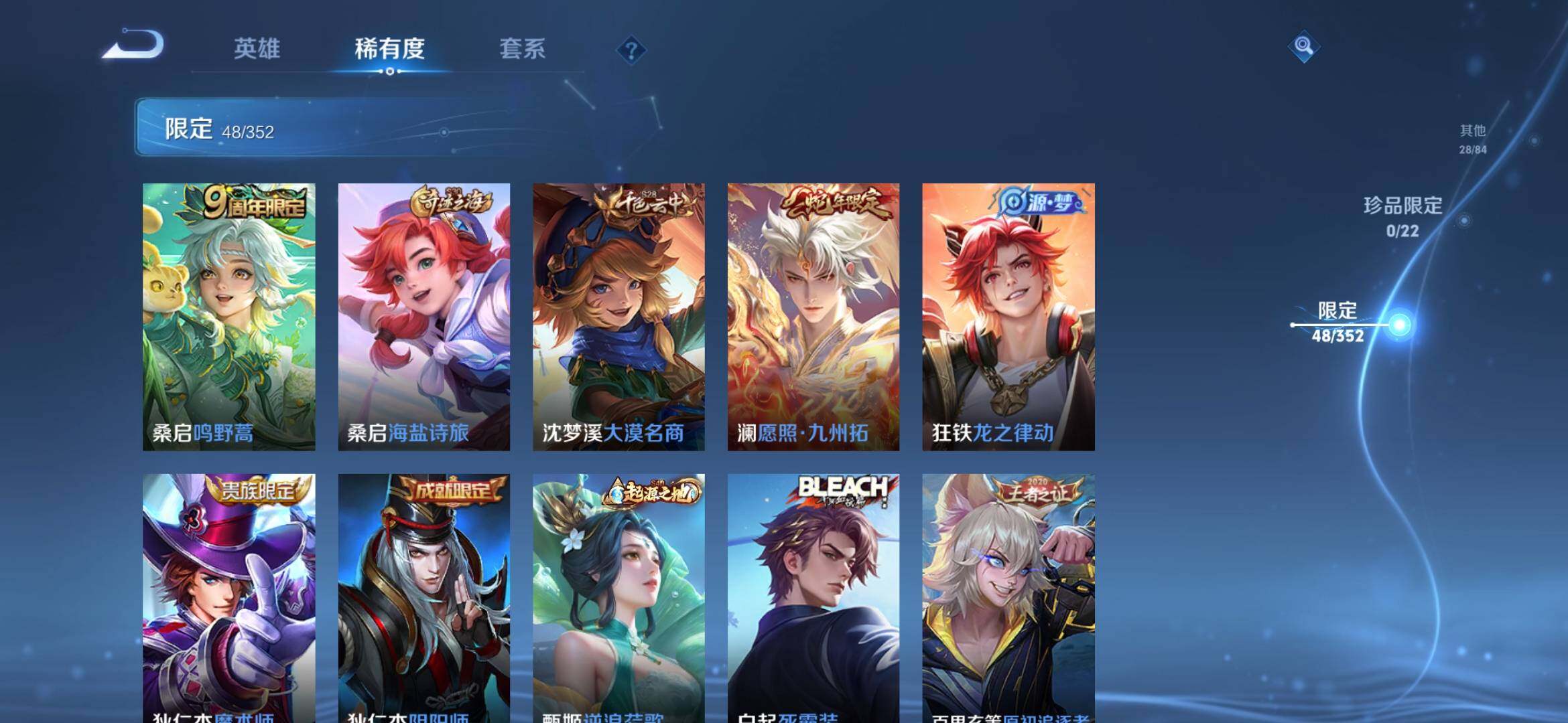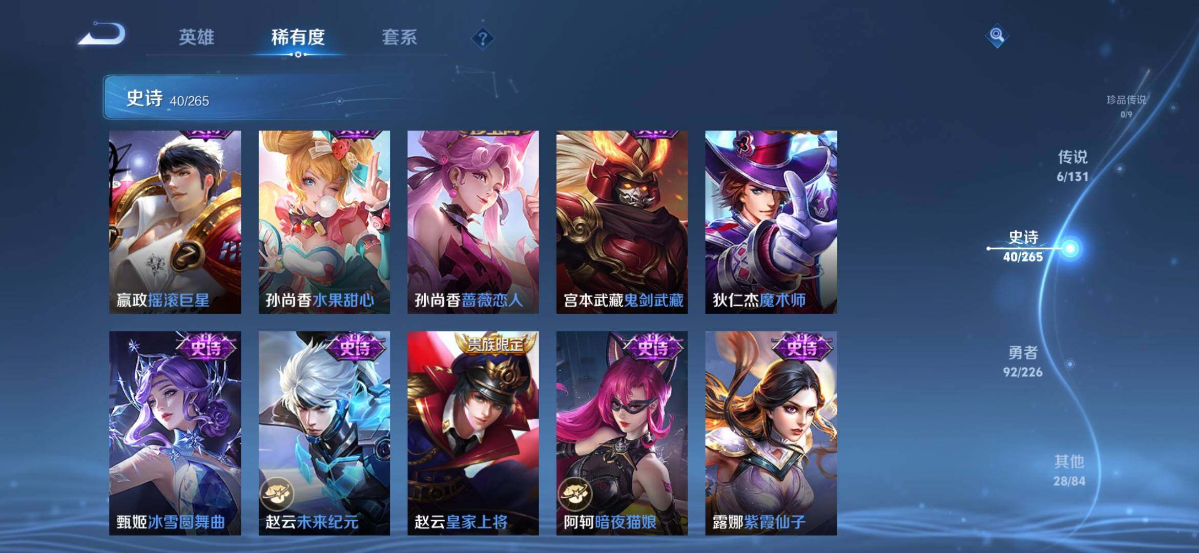 【愿照九州拓 幽冥之眼 星际治安官 淬星耀世 埋骨钱 6传说性价比小号】安卓Q-V6-126英雄-166皮肤-0典藏-0珍品无双-0无双-0珍品传说-6传说-40史诗