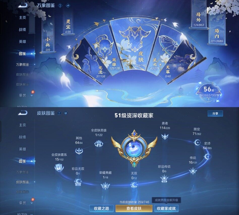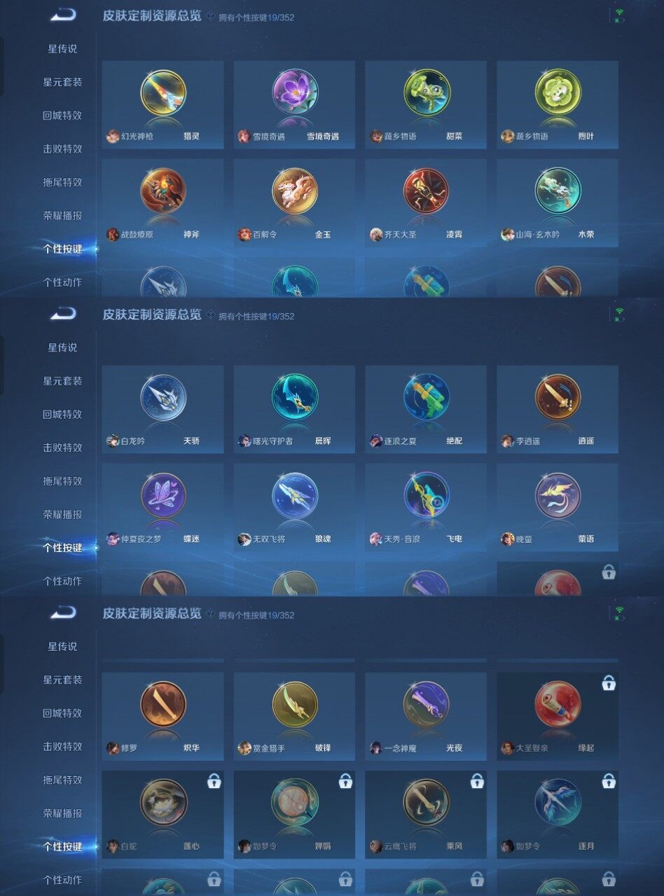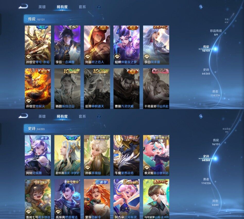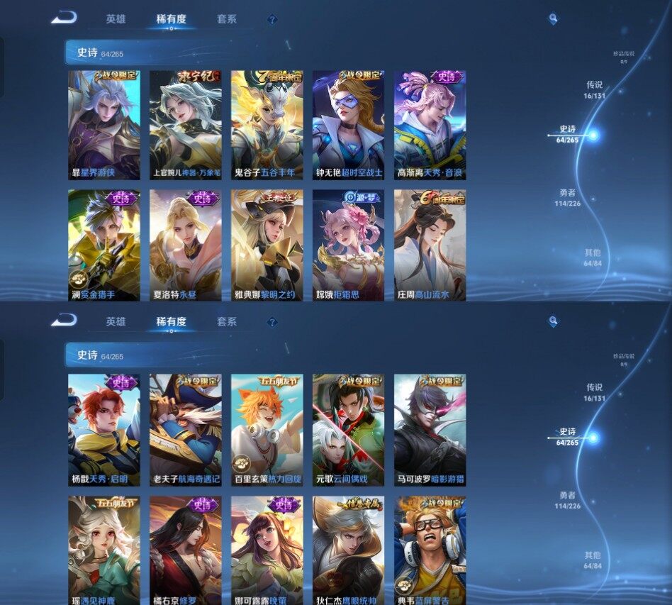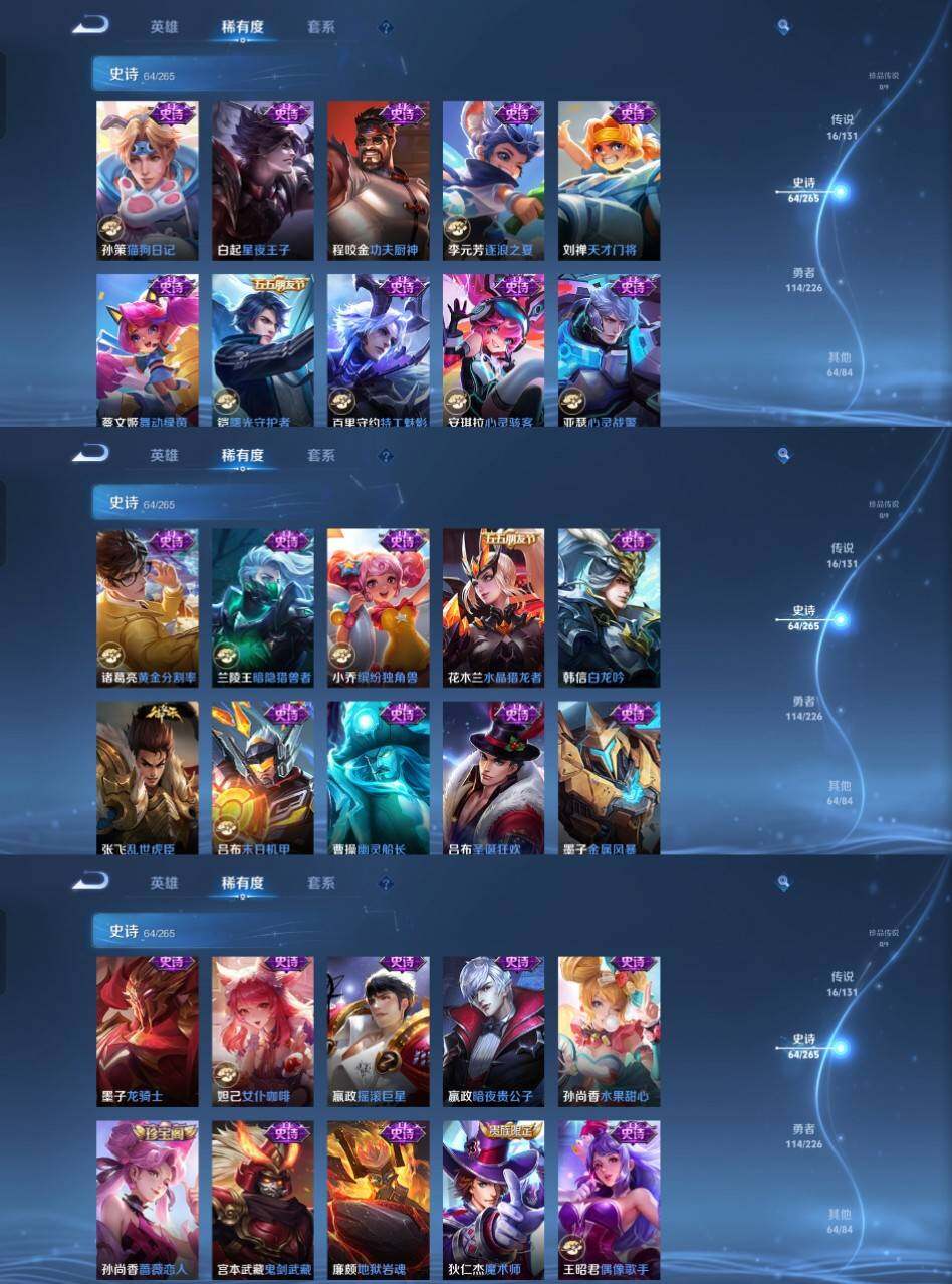 my7王者《125英雄259皮肤》1典藏16传说64史诗19按键 神