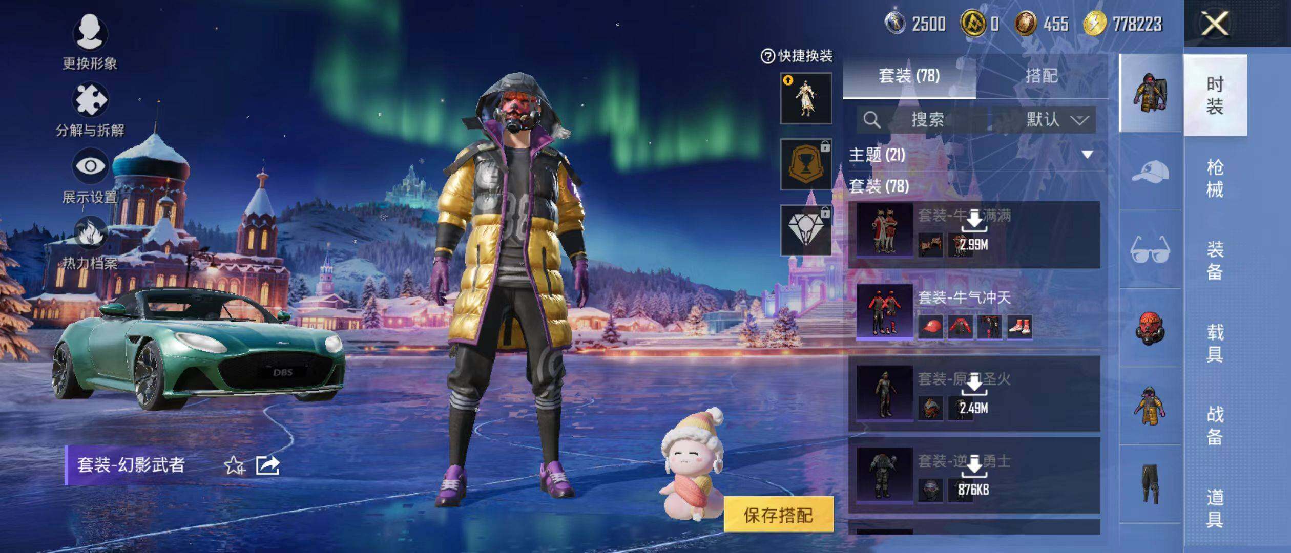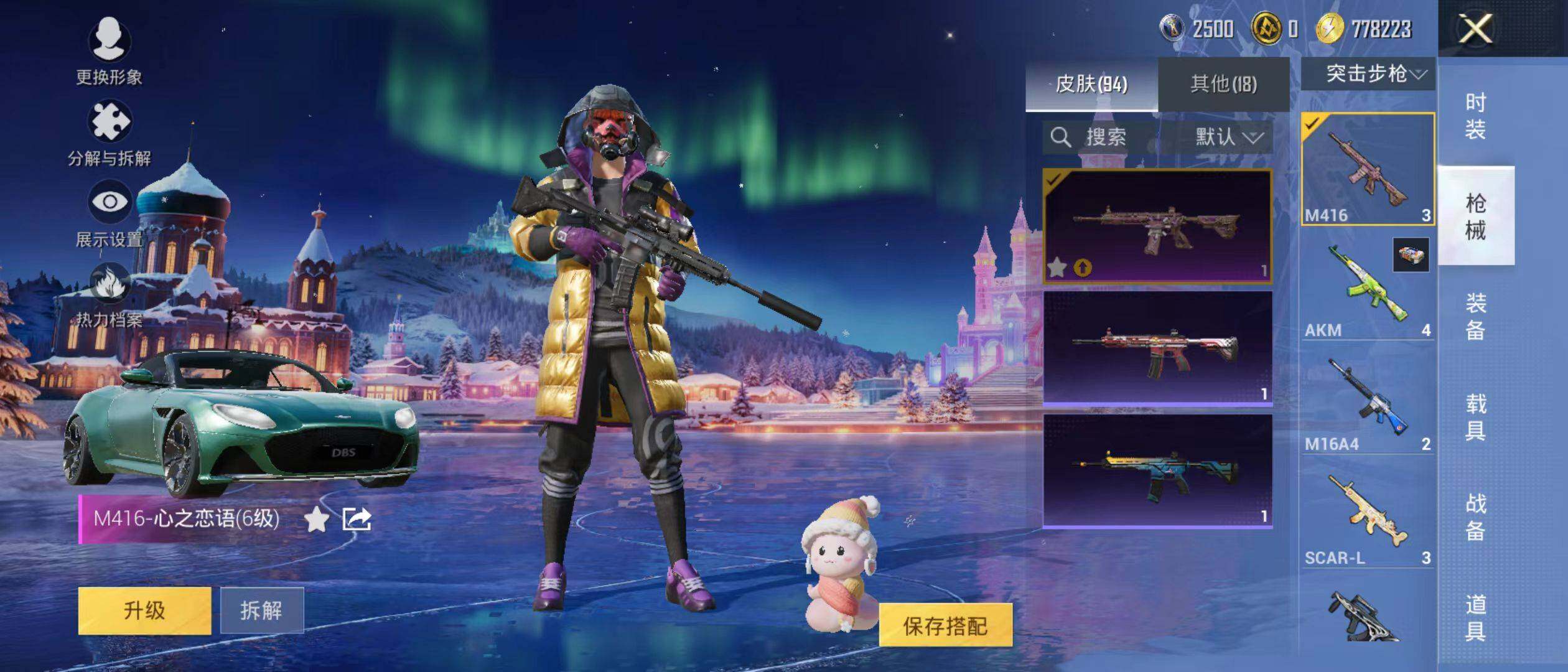 安卓 手Q-2神装-4粉装-5特效枪-1载具-8粉色飞行器-38478热力值-3王牌印记-78套装-94枪皮