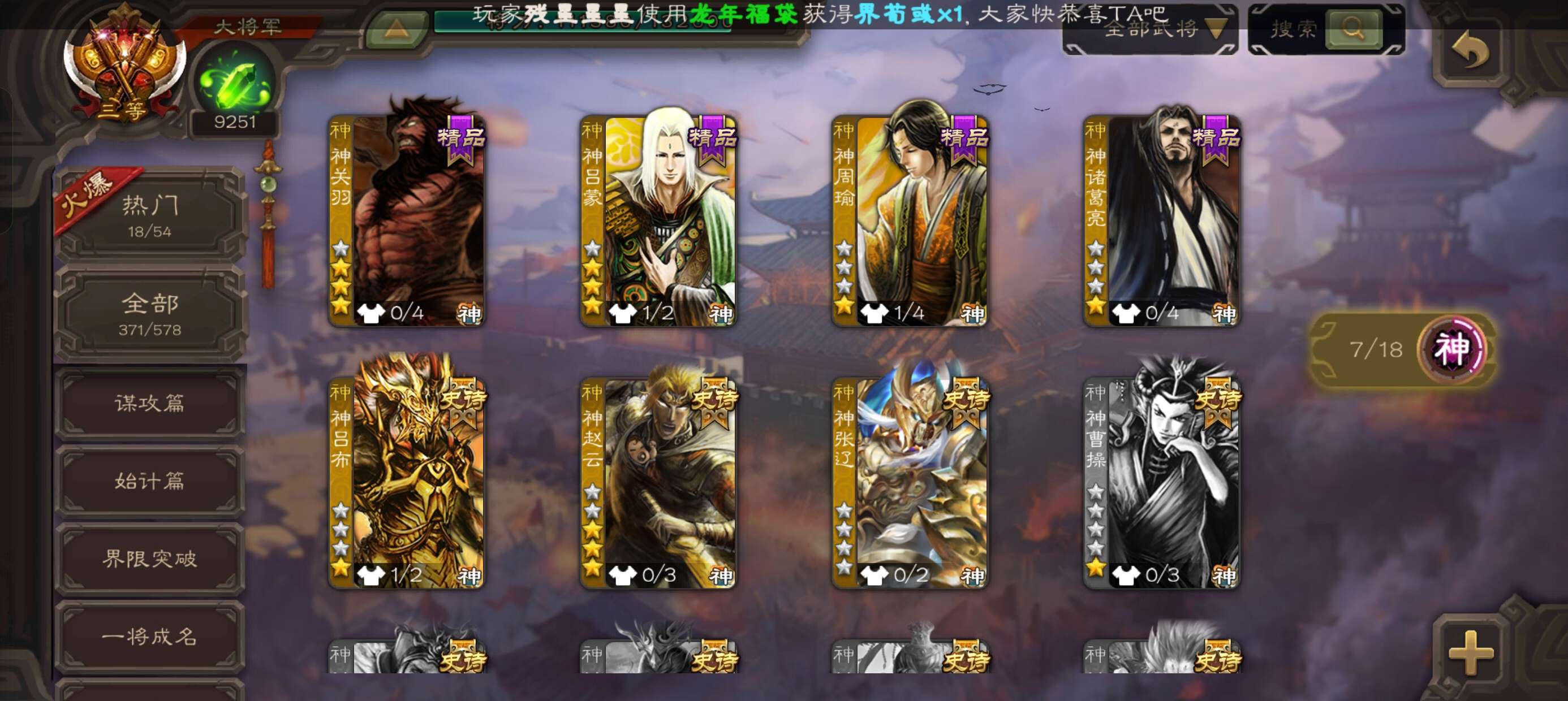 史诗武将数量: