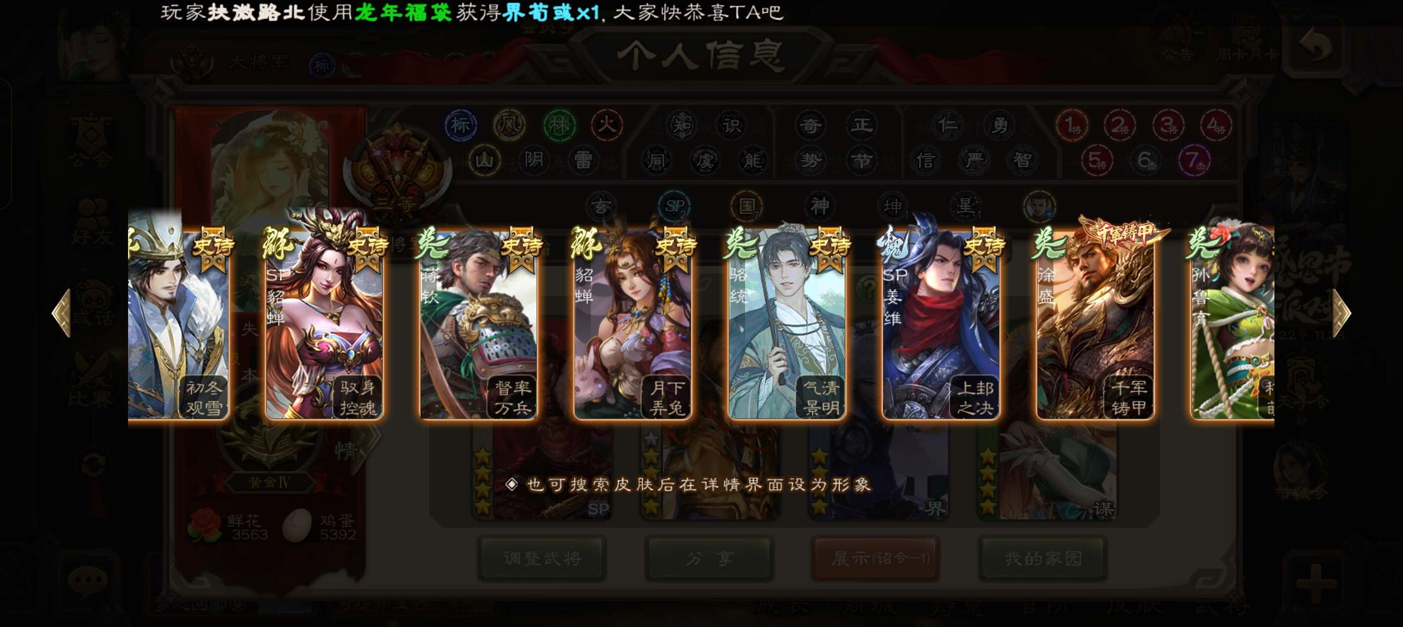 v9大将军,年卡,33珠子,9000将魂,40000鸟毛,友诸葛亮,势陆郁生