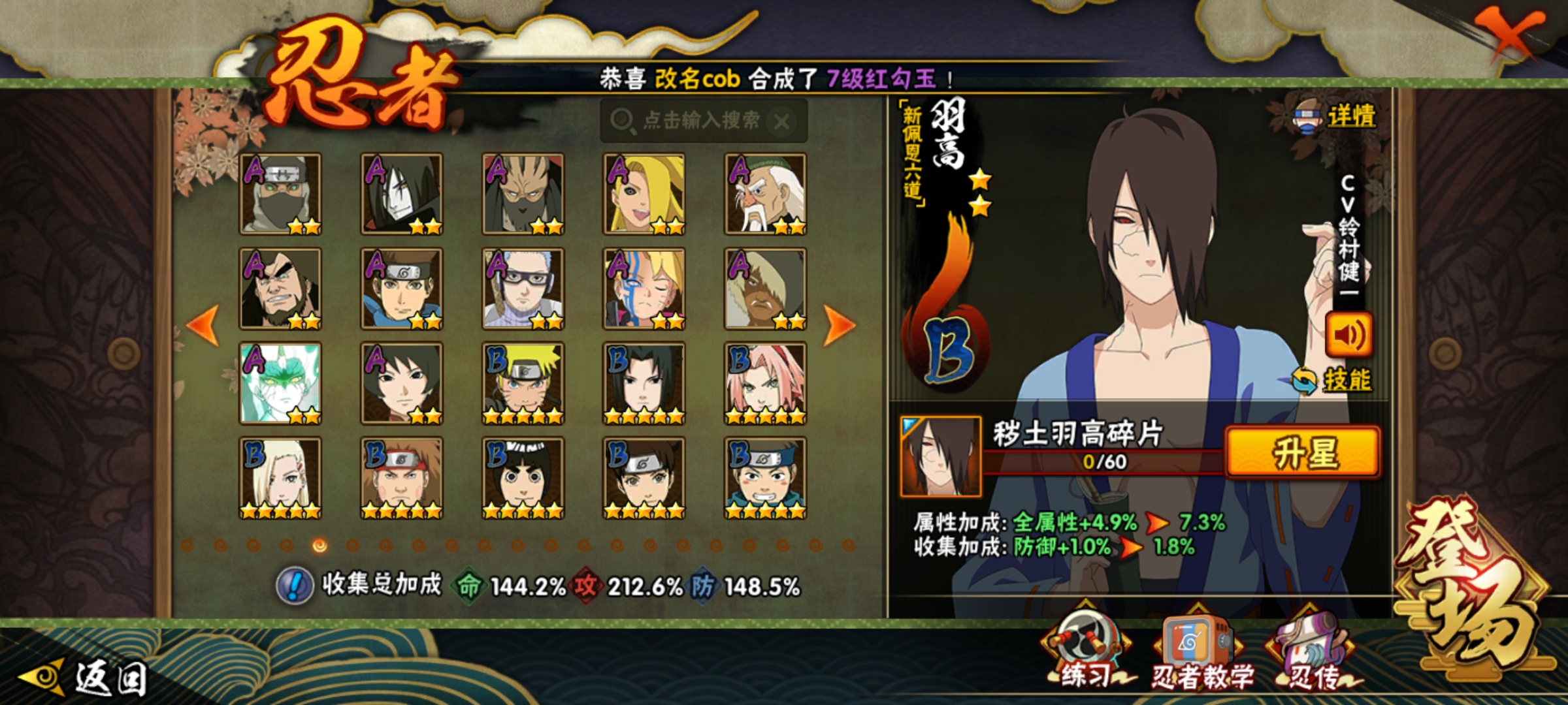 账号V9 S忍有37个A忍有55个,两千万战力,阿斯玛和鬼鲛有时装,忍法帖S有小胡子 天道超 三代雷 忍法帖还有一个25的,金币还剩三万,每代高招都有,另外英雄联盟也有端手游双账号