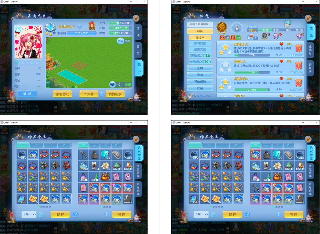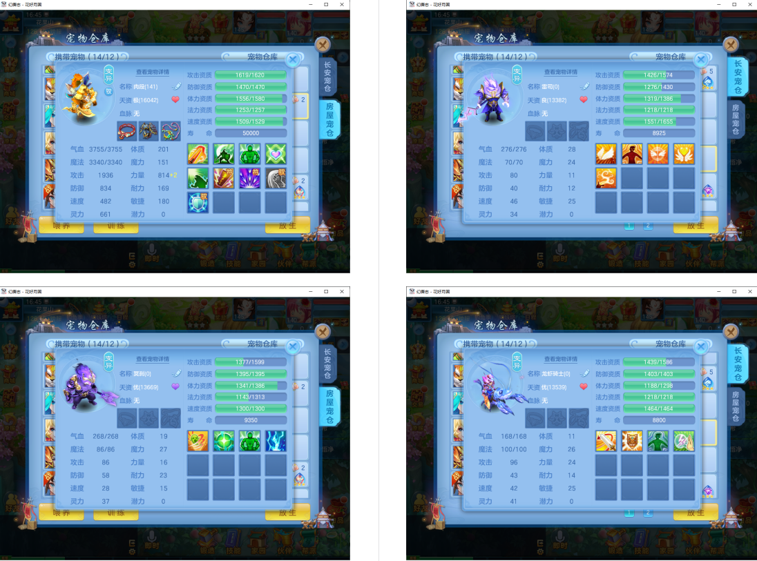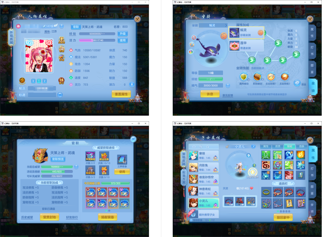 (140普陀/女)花好月圆/赠送邮箱/一年换绑/有双重---1件14段4件13段1件12段,特技装,满魂内丹神兽+日常宝宝完成购,红心紫心很多,带3400万银子,7万积分(其他的积分也有几千),仓库还有60颗神兽灵,44内丹碎片,2500金子,2875成就