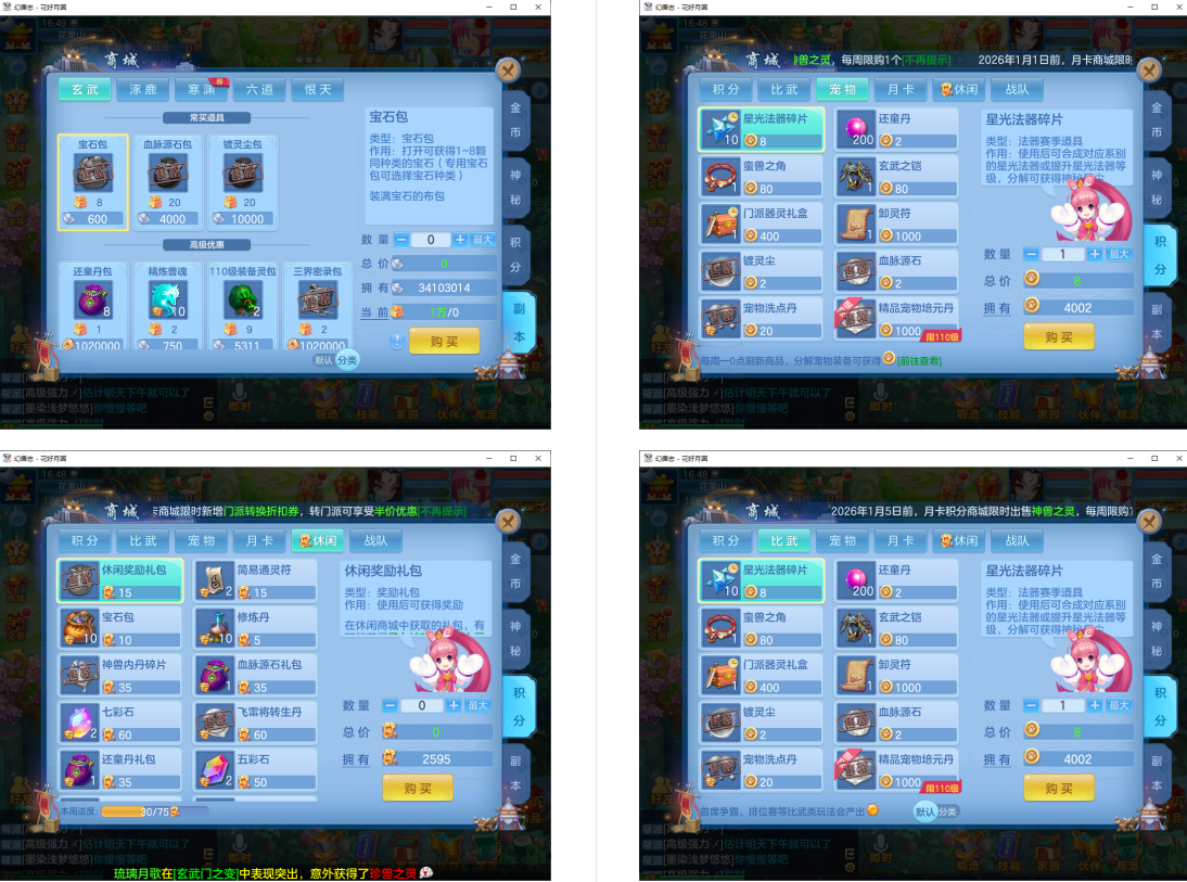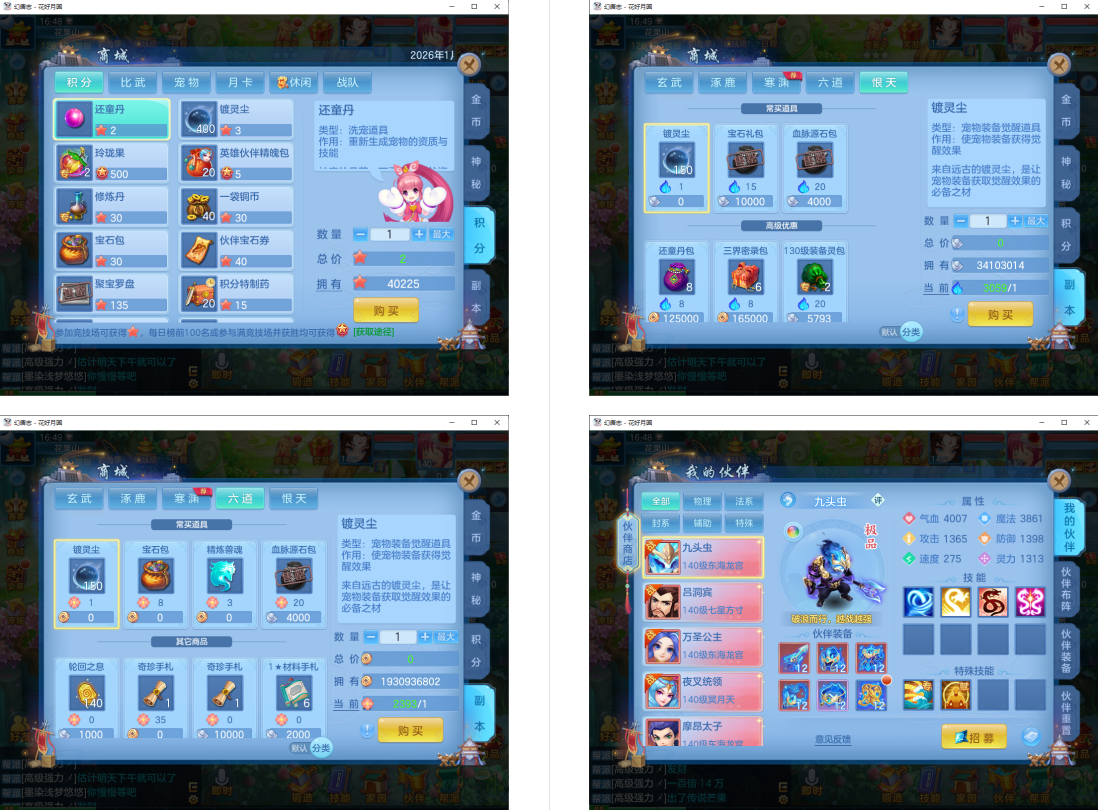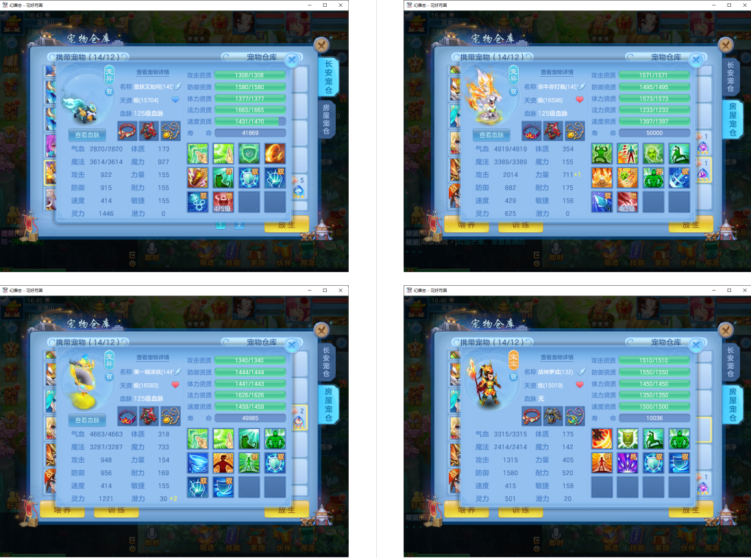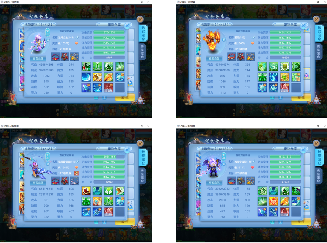 (140普陀/女)花好月圆/赠送邮箱/一年换绑/有双重---1件14段4件13段1件12段,特技装,满魂内丹神兽+日常宝宝完成购,红心紫心很多,带3400万银子,7万积分(其他的积分也有几千),仓库还有60颗神兽灵,44内丹碎片,2500金子,2875成就