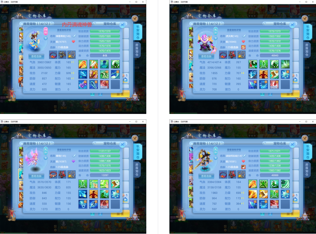 1件14段4件13段1件12段,特技装,满魂内丹神兽+日常宝宝完成购,红心紫心很多,带3400万银子,7万积分(其他的积分也有几千),仓库还有60颗神兽灵,44内丹碎片,2500金子,2875成就