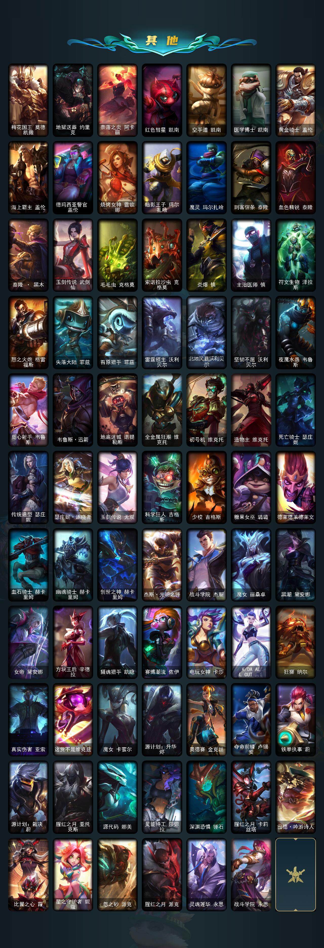164英雄/442皮肤/1终极/4神话/70限定/