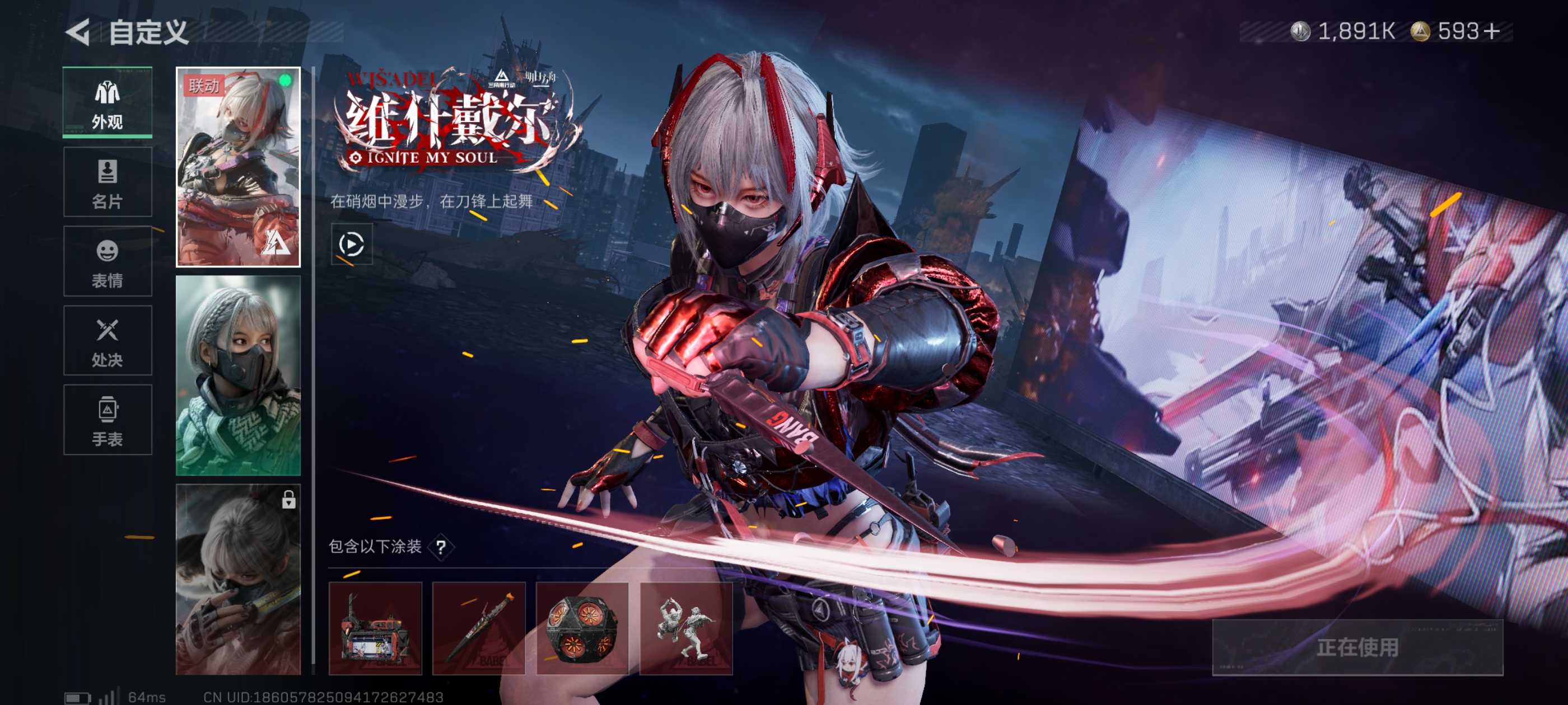 DSX1014三端互通Q-总价值12.4M-哈夫币1891K-烽火地带等级60-烽火地带段位铂金 【枪皮】M4A1突击步枪-蚀金玫瑰 M4A1突击步枪-阿米娅 ASh-12战斗步枪-鹅鸭杀 M16A4突击步枪-狩猎时刻 SCAR-H战斗步枪-启航 G3战斗步枪-骑士 G3战斗步枪-狩猎时刻 Vector冲锋枪-狩猎时刻 勇士冲锋枪-能天使 QCQ171冲锋枪-鹅鸭杀 QJB201轻机枪-鹅鸭杀 R93狙击步枪-维什戴尔 【干员皮肤】骇爪-维什戴尔