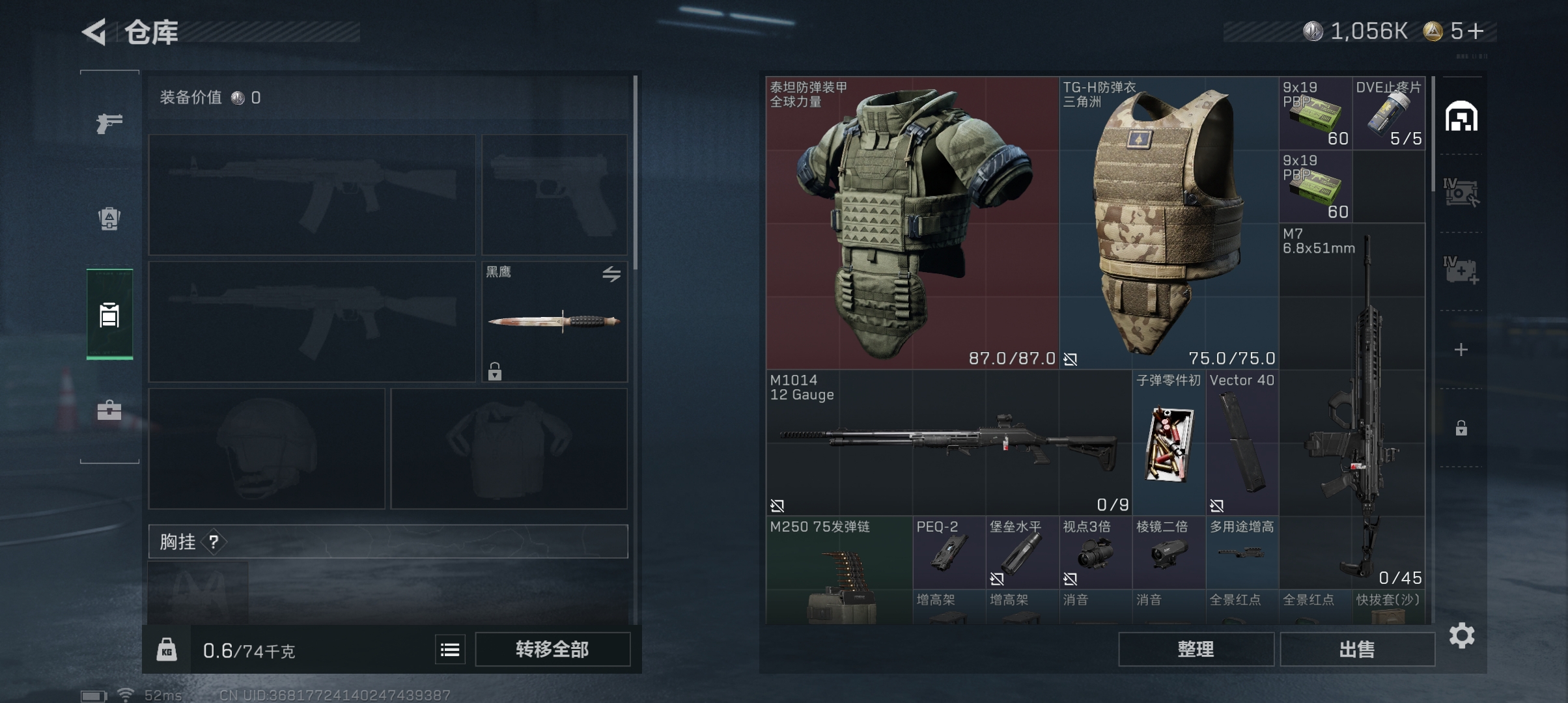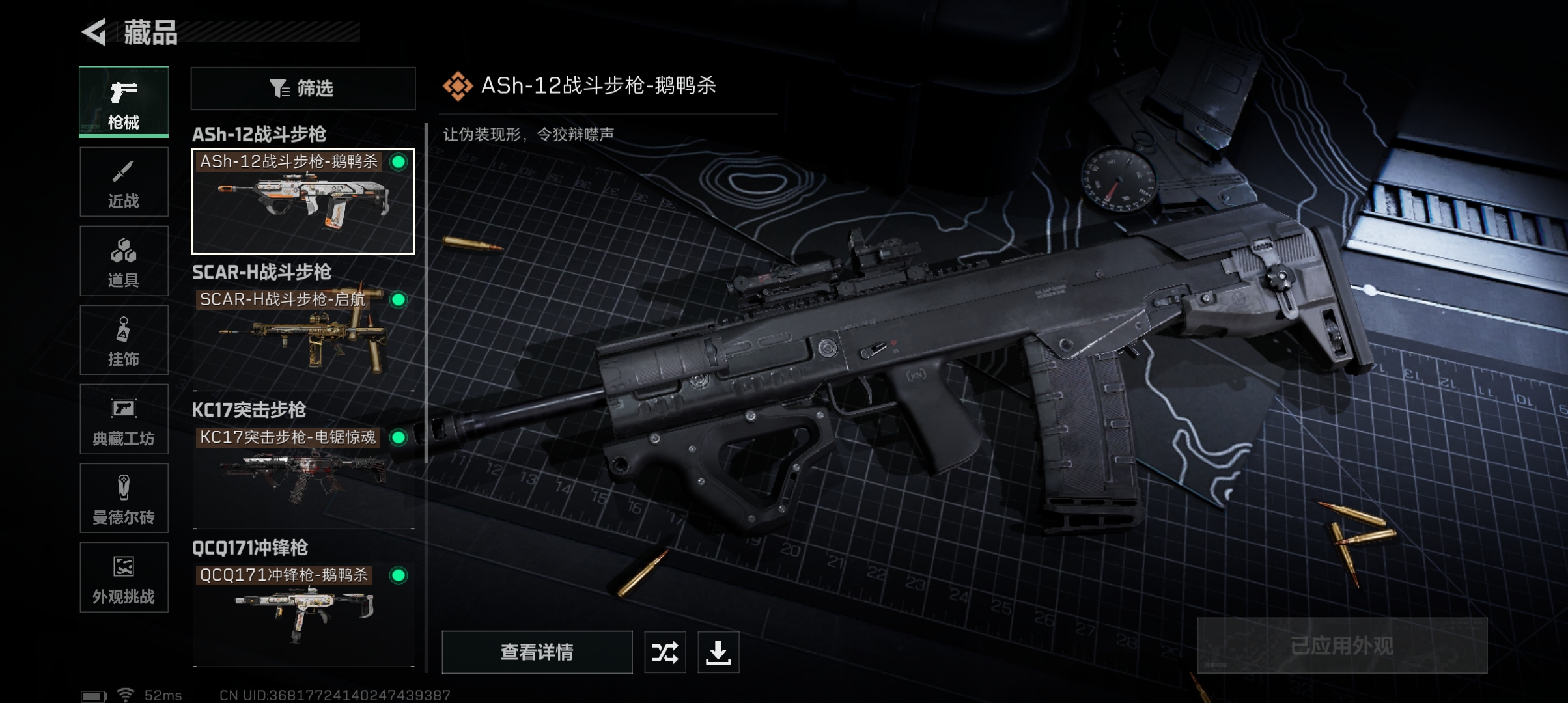 DSX956+【总资产24.1M 2干员 维什戴尔 电锯惊魂 黑鹰 7传说枪 33级】三端互通-Q区-哈夫币1,056K-行动等级33-烽火地带段位:黄金 【枪皮】 ASh-12战斗步枪-鹅鸭杀 SCAR-H战斗步枪-启航 KC17突击步枪-电锯惊魂 QCQ171冲锋枪-鹅鸭杀 SR-25射手步枪-水墨云图 R93狙击步枪-维什戴尔【刀皮】 黑鹰