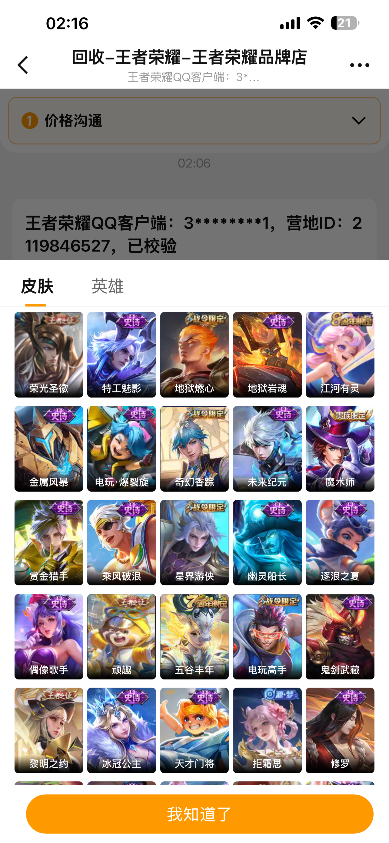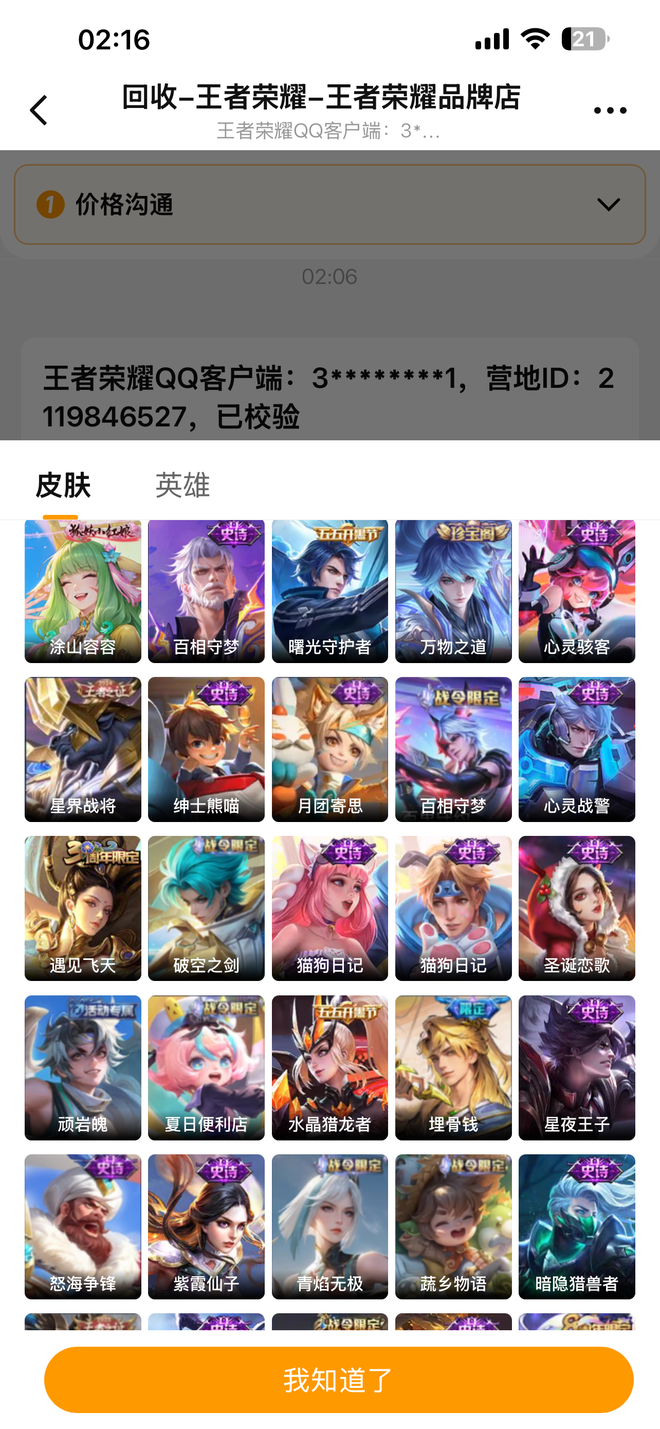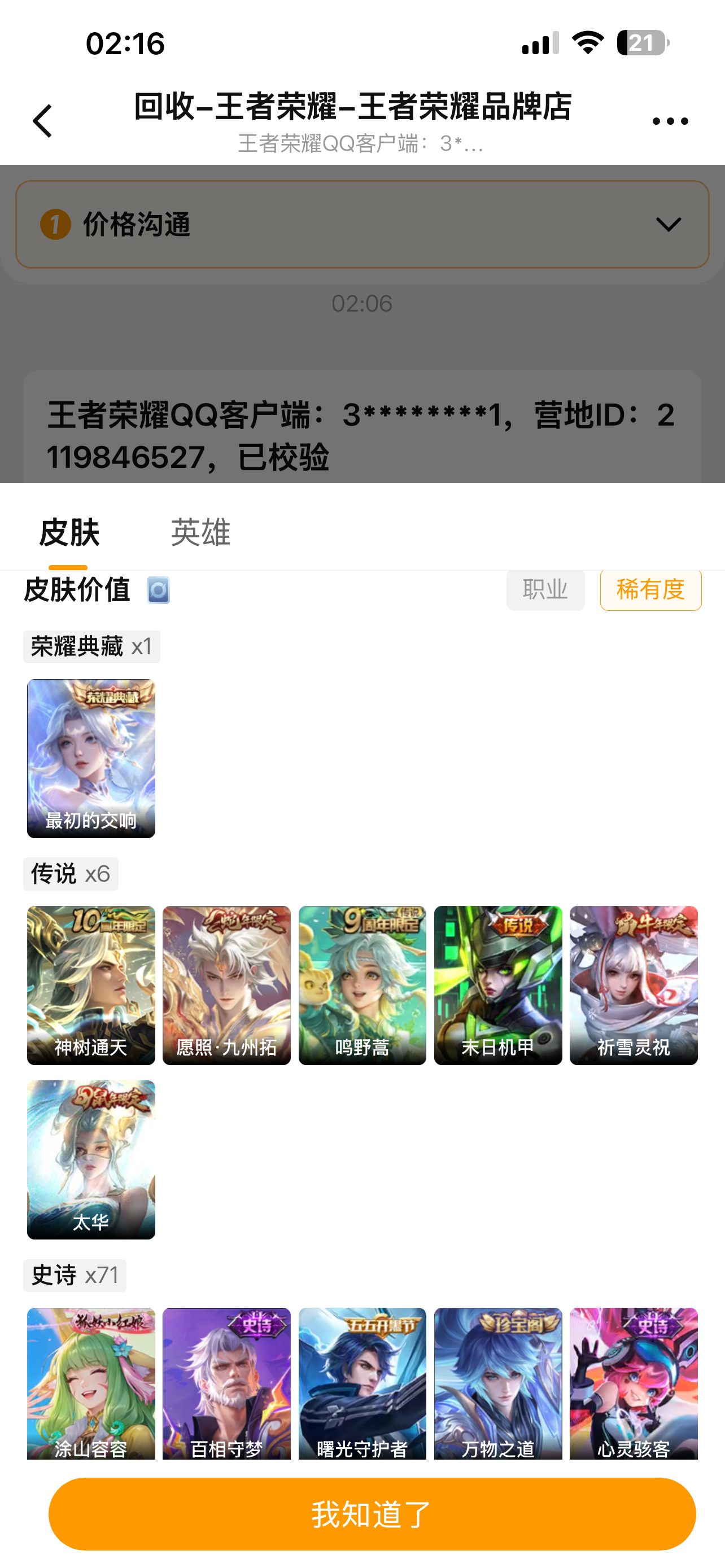 通过App,与卖家商议价格及保险,并向卖家索要账号最新截图,确认后下单购买。
