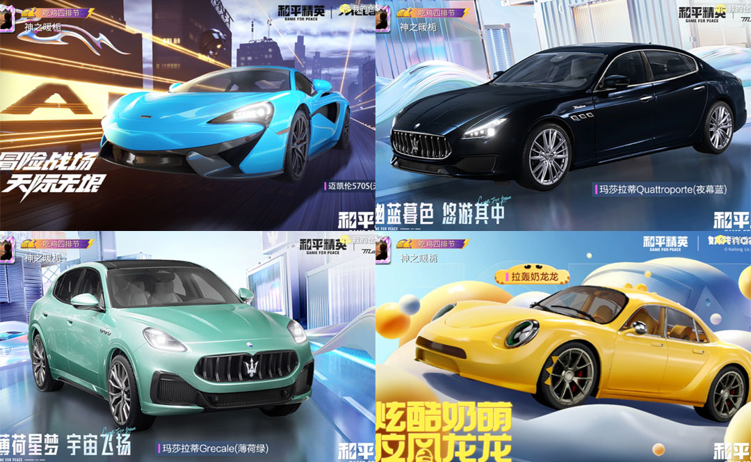 载具6:辉羽雀灵,夜幕蓝玛莎,拉轰奶龙龙,天际蓝迈凯伦,绿蹦蹦,绿玛莎