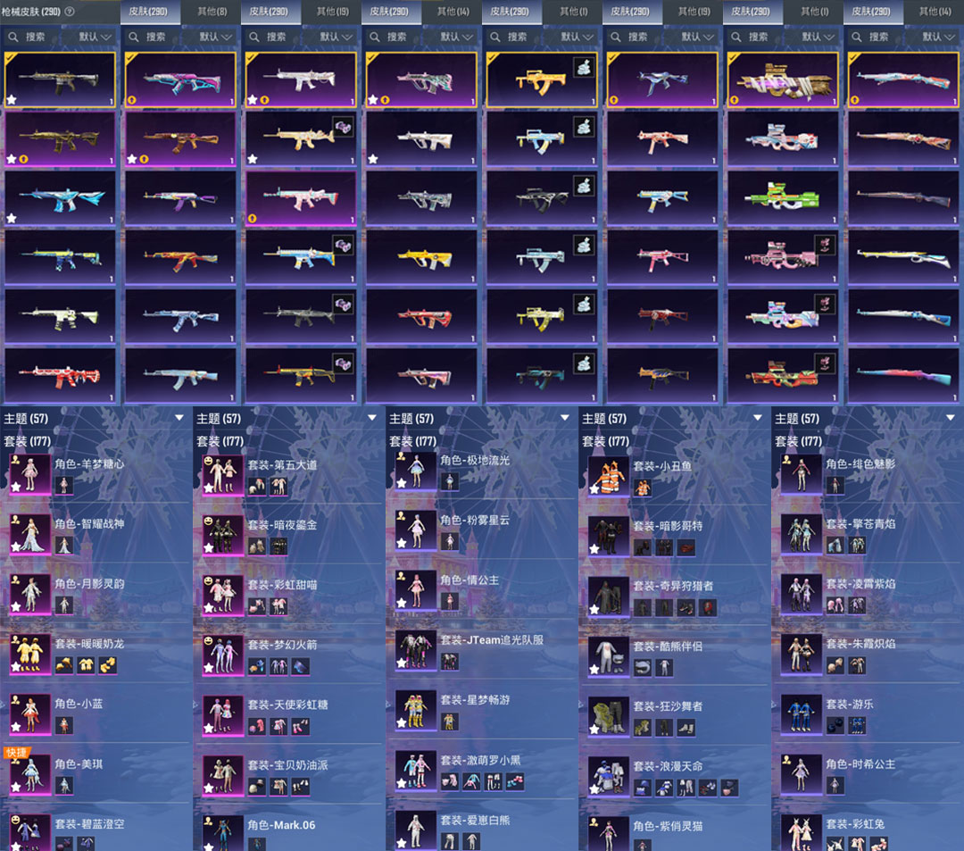 紫装: JTeam追光队服,爱崽白熊,小丑鱼,暗影哥特,奇异狩猎者,酷熊伴侣,,