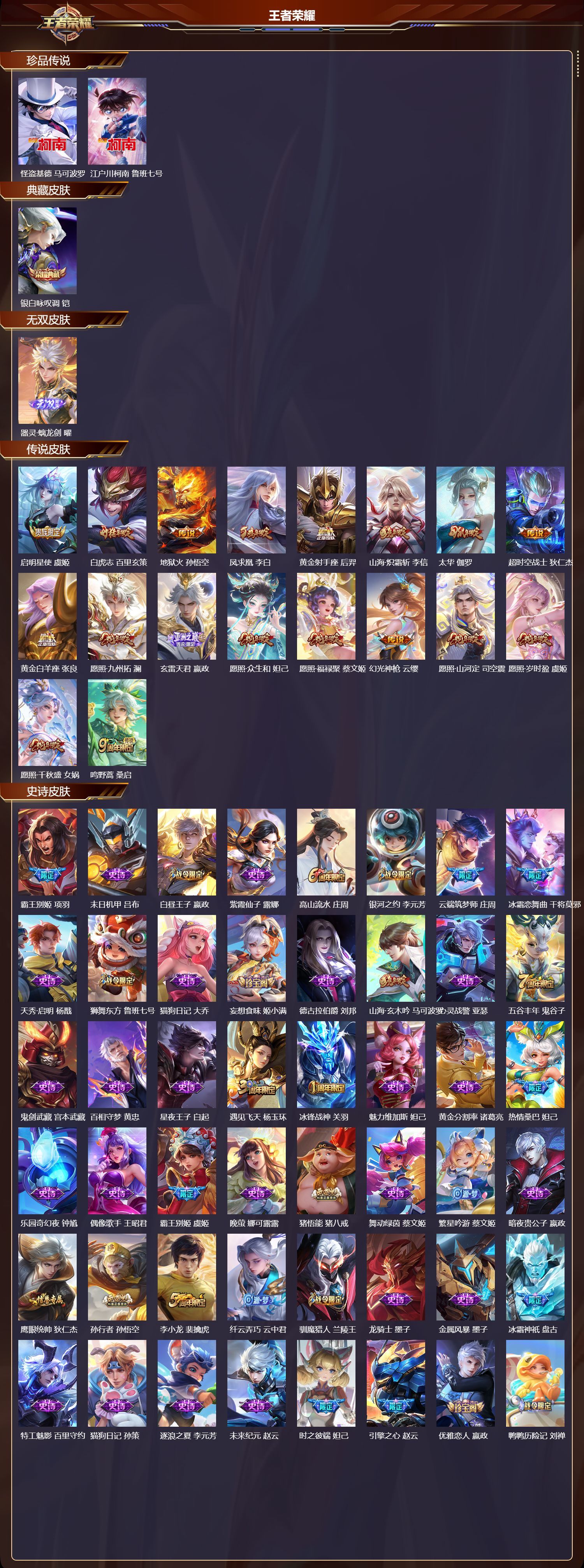 安卓QQ/非凡王者/316皮肤/125英雄/1典藏/0珍品无双/1无双/2珍品传说/18传说/87史