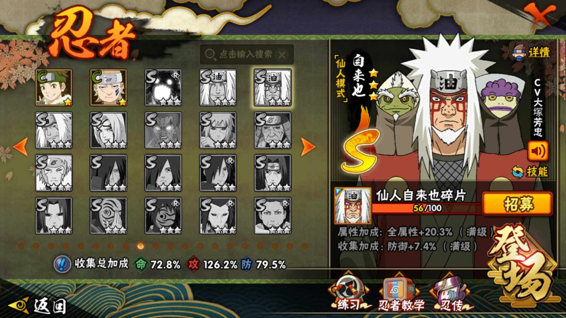 V10 22S忍 26A忍 162忍 2795S碎片 18通灵 1068W战力 前500名 暗部 自来也93片,仙人自来也56片,日斩79片,面具男84片,YY1065