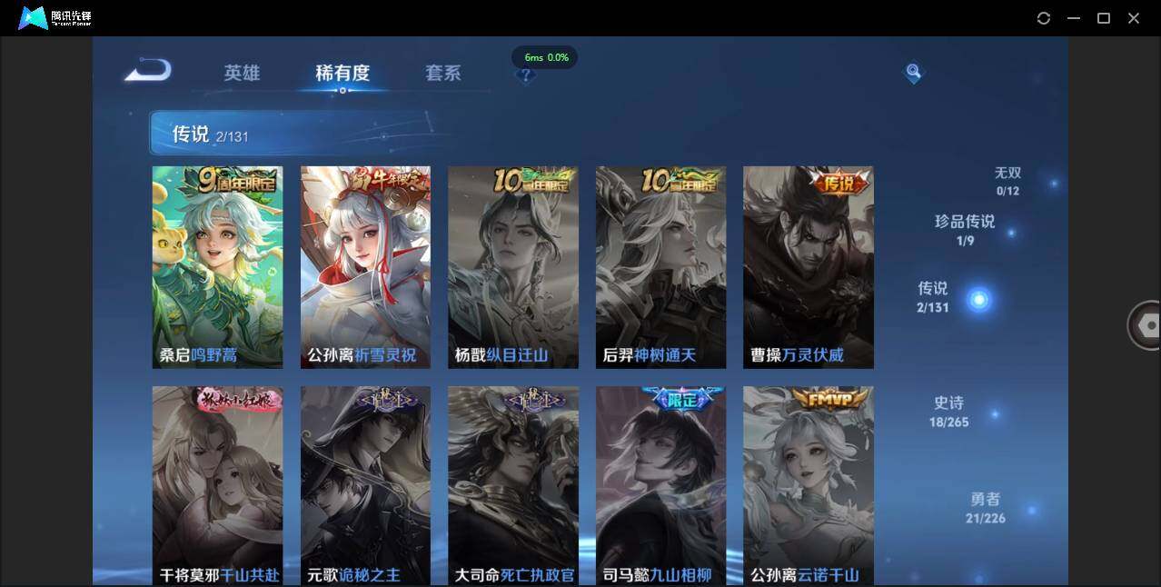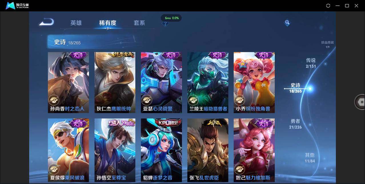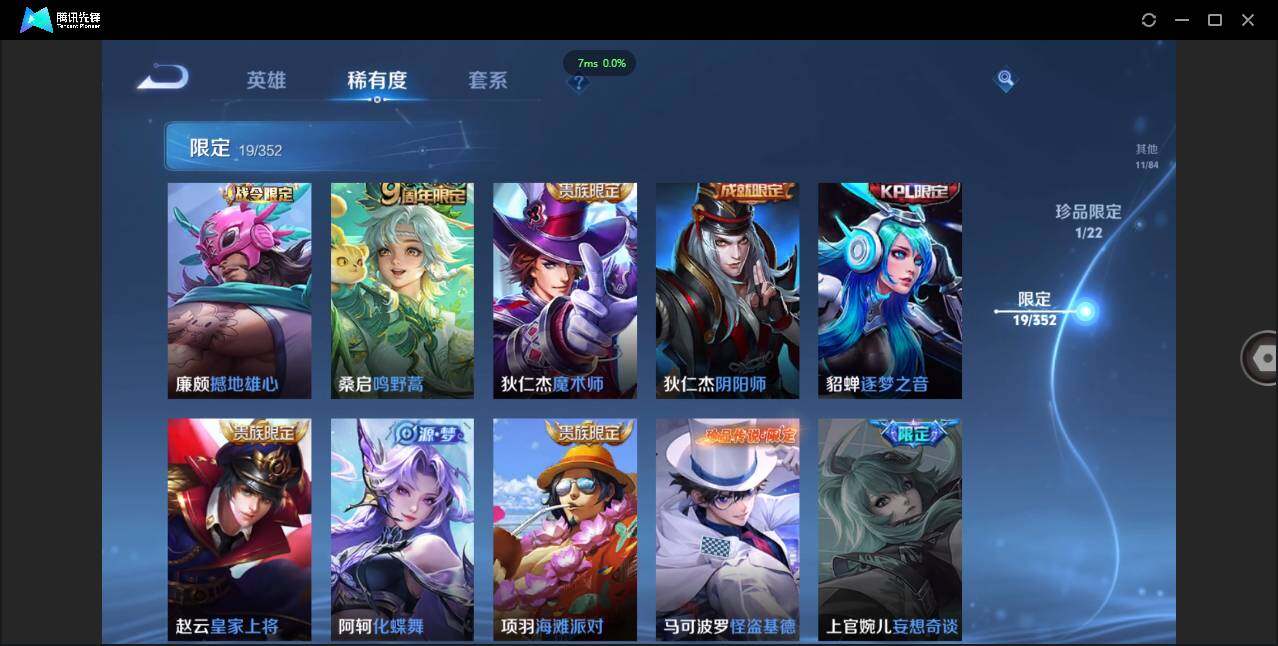 可二次-贵6-84英雄-53皮肤-1珍品传说-2传说-19限定-贵族积分1.5万