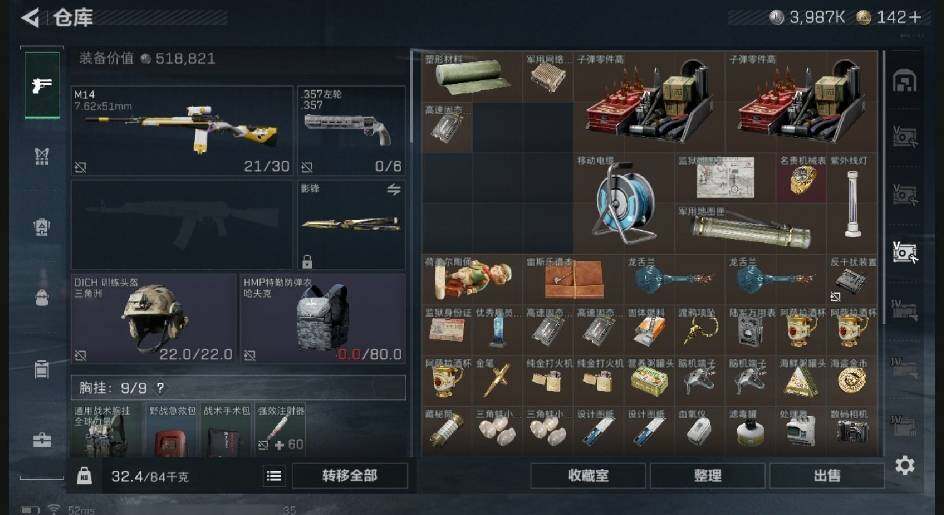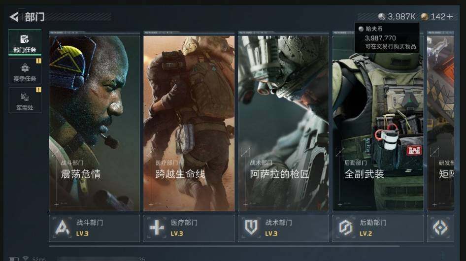 【特勤处】制药台Lv.3/工作台Lv.3/仓库Lv.9/防具台Lv.3/训练中心Lv.7/靶