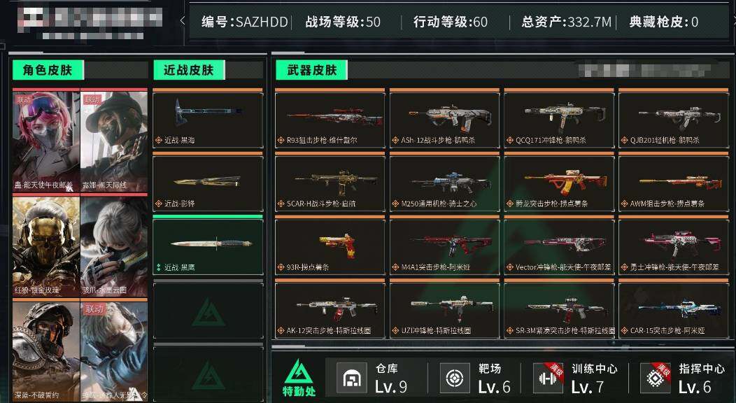60级无封禁记录/332w现金/总资产398M/7体6负/蛊/露娜/水墨/黑狼