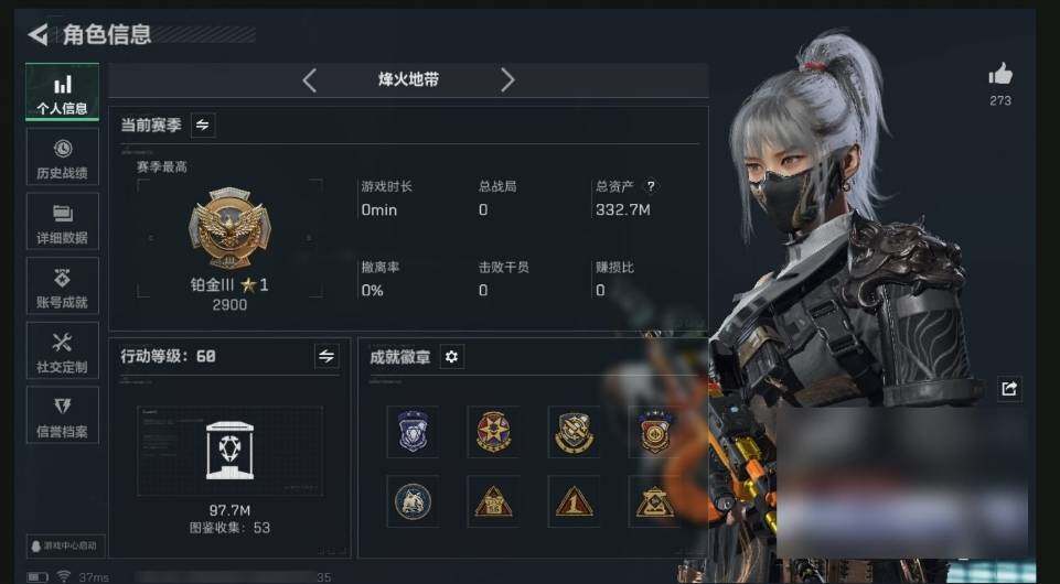 【个人信息】战场等级:50 上等兵,行动等级:60 铂金