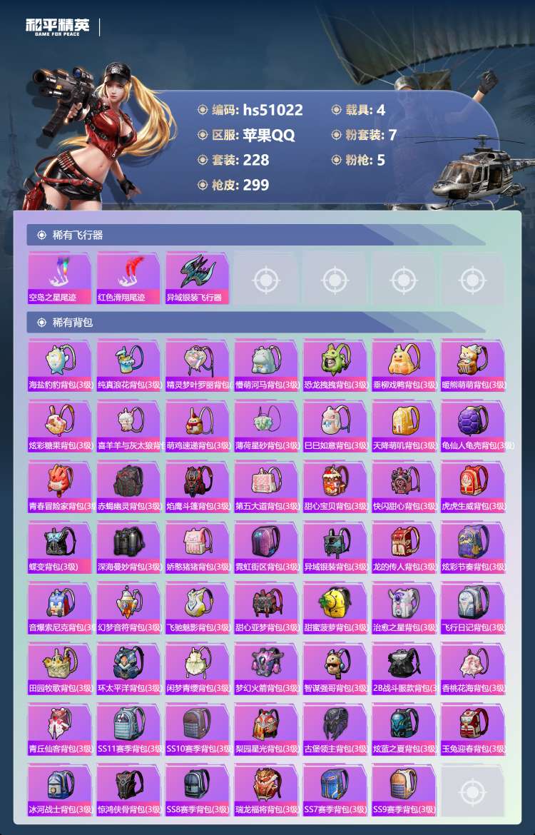 hs51022 苹果手Q-16王牌印记-7粉装-5特效枪-4载具-97892热力值-228套装-29