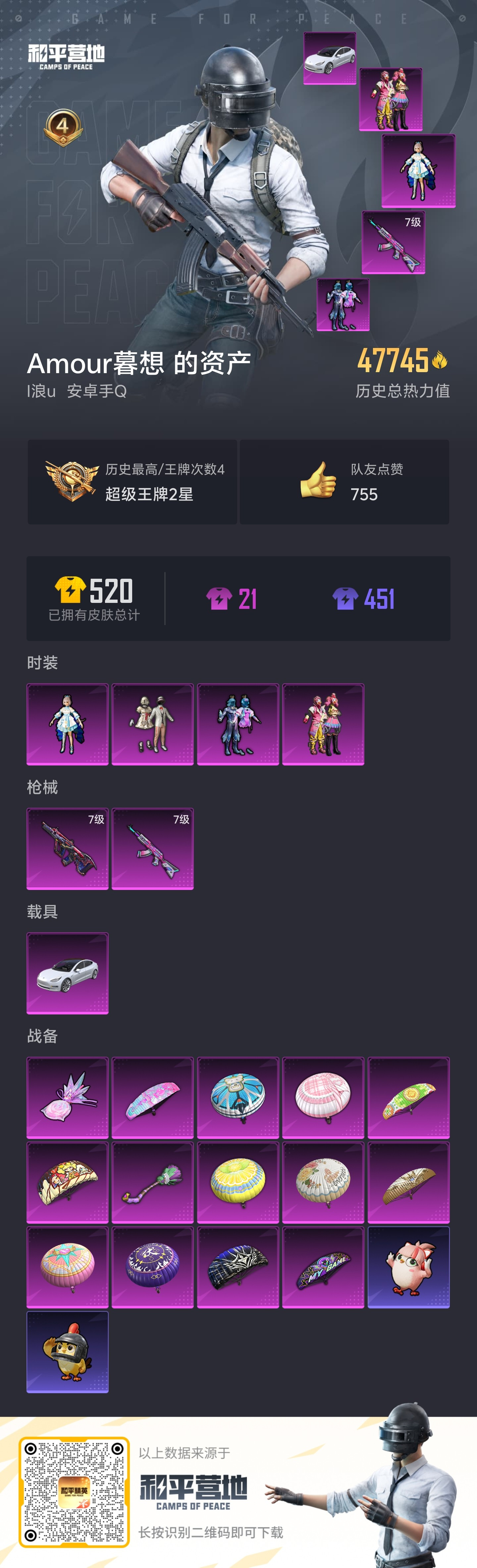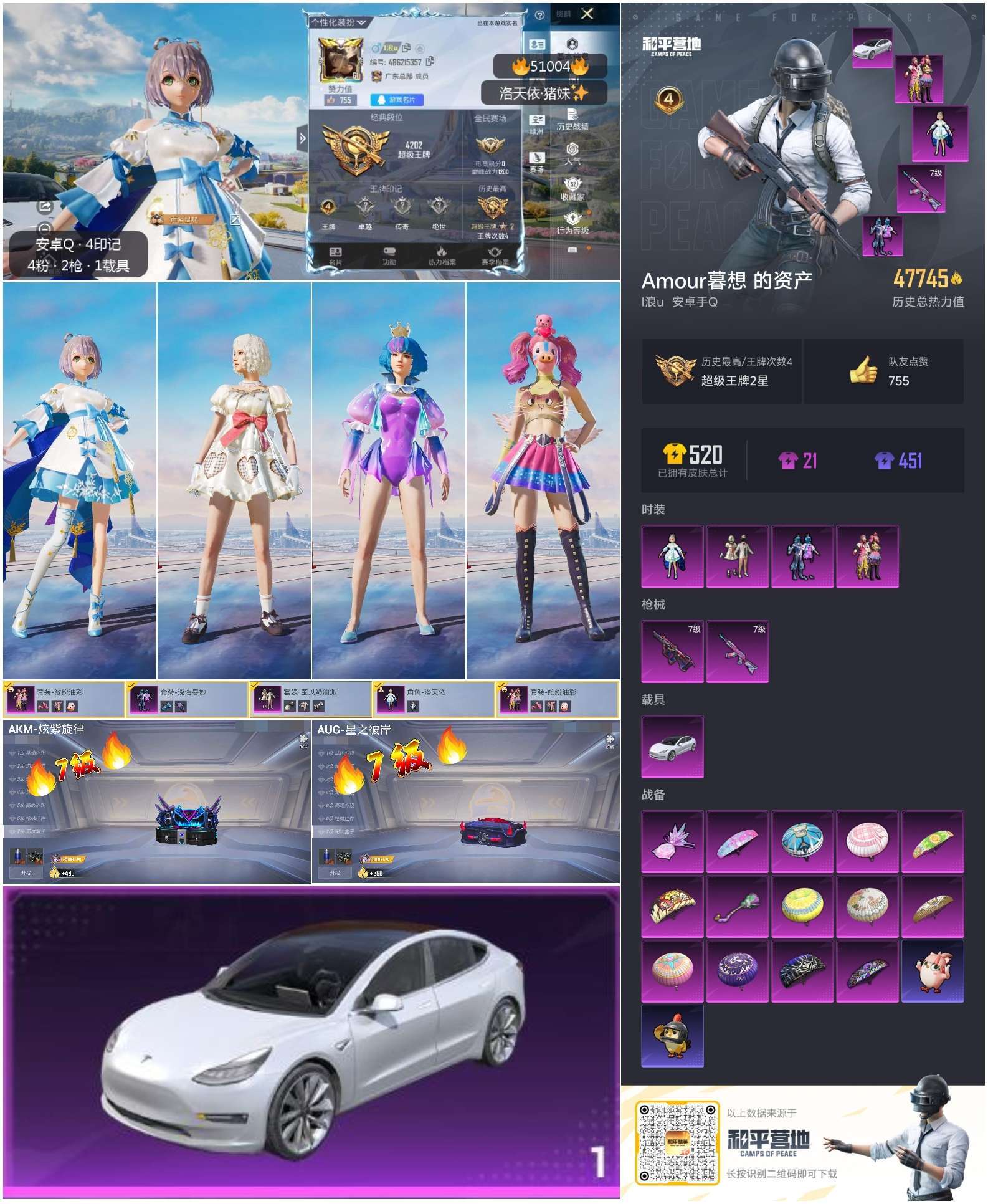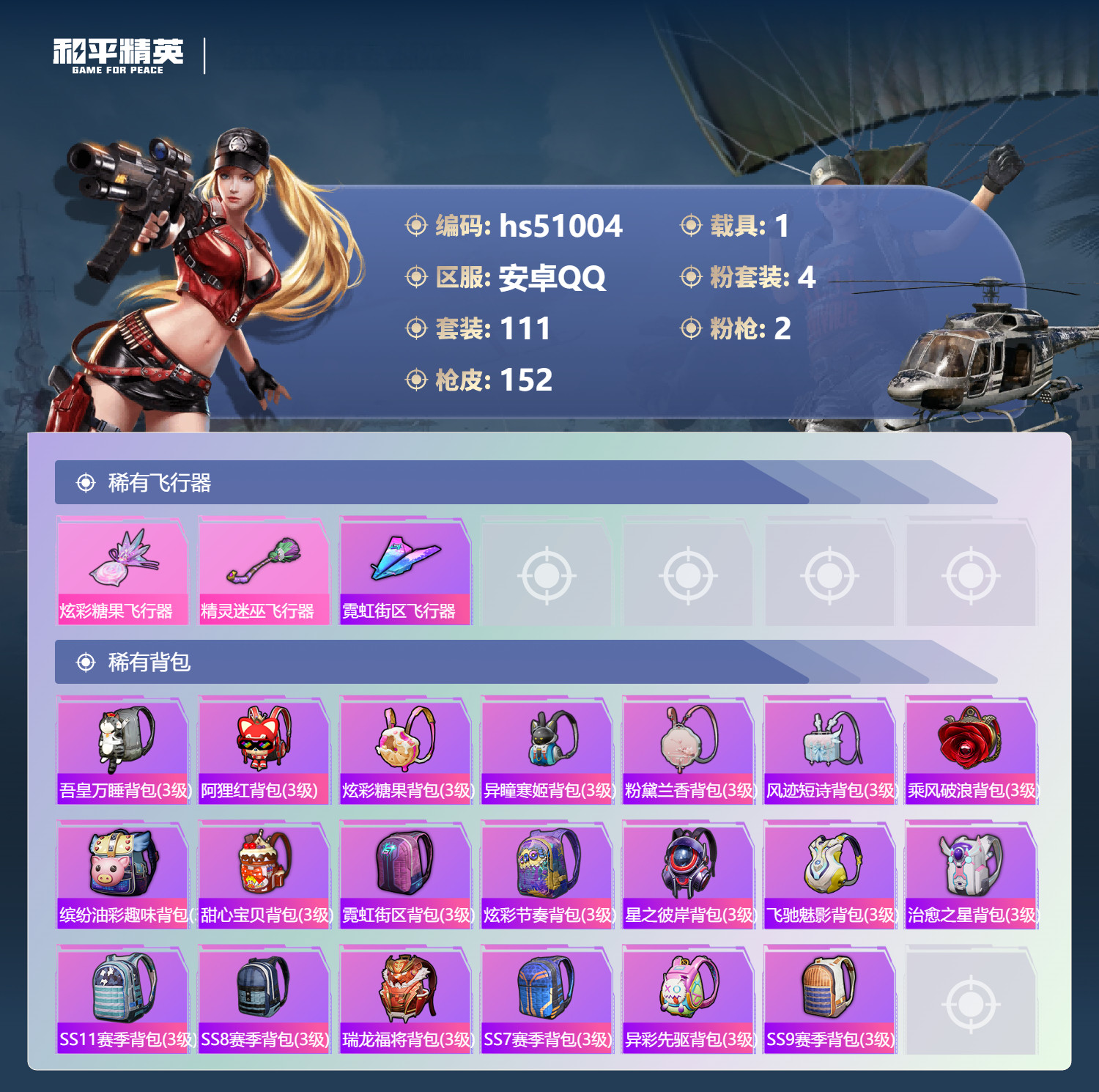 hs51004 安卓手Q-4王牌印记-4粉装-2特效枪-1载具-47745热力值-111套装-152