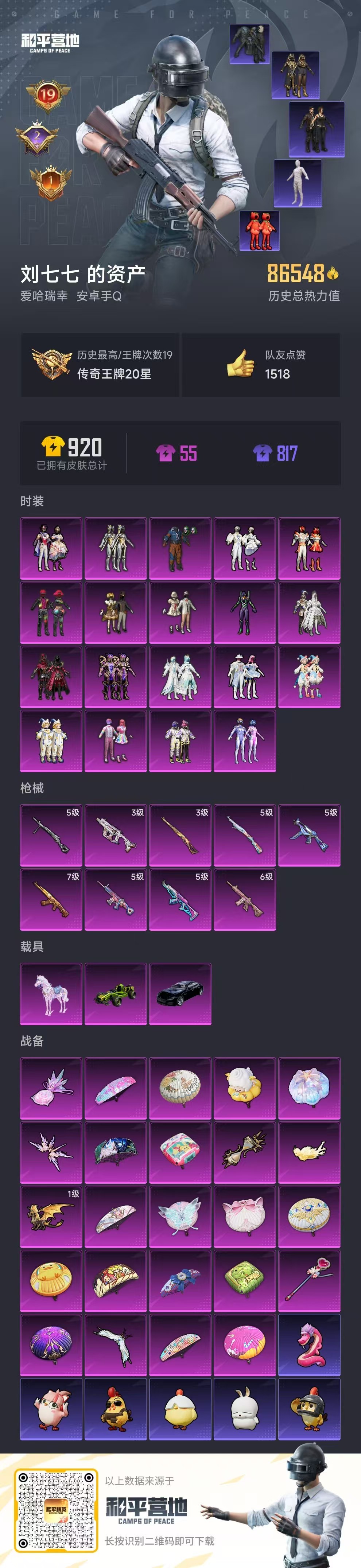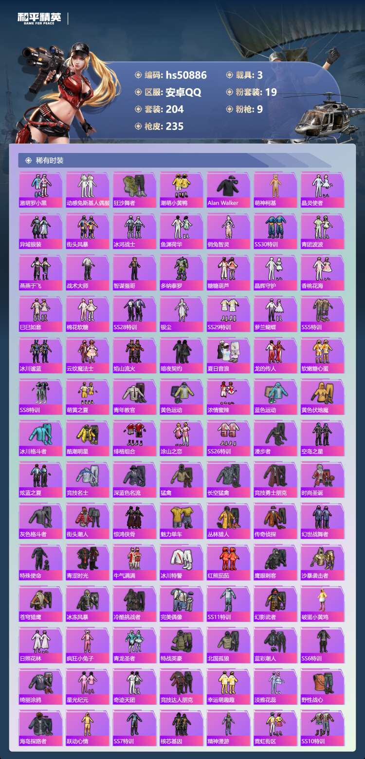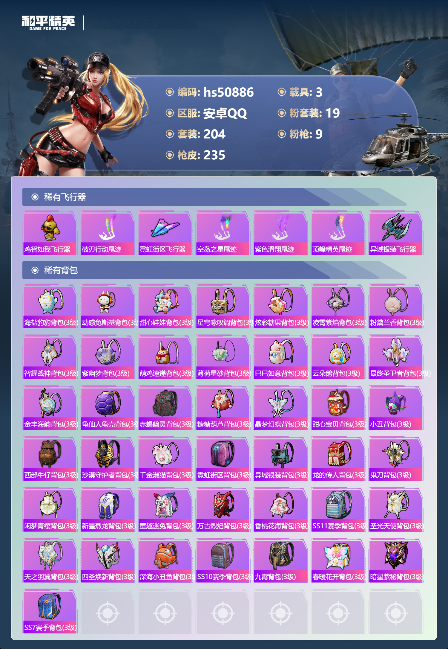 hs50886 安卓手Q-19王牌印记-19粉装-9特效枪-3载具-86548热力值-204套装-2
