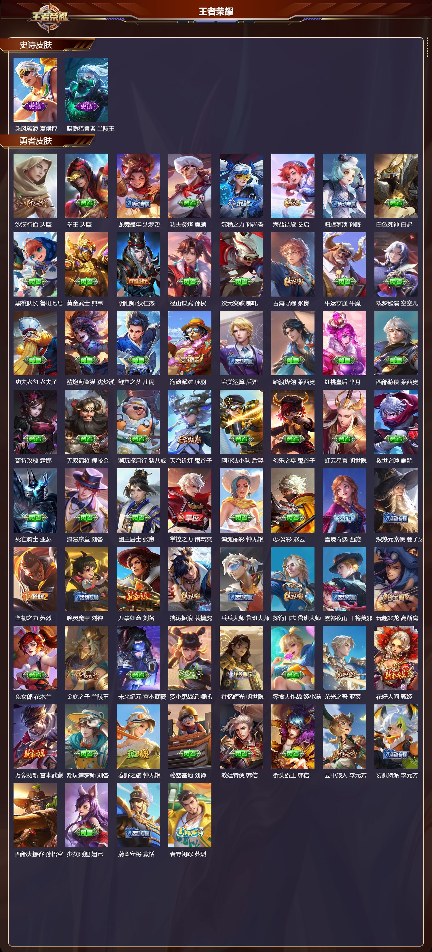 荣耀王者/209皮肤/125英雄/1典藏/1无双/14传说【1 典藏皮肤】银白咏叹调 铠,【1 无双