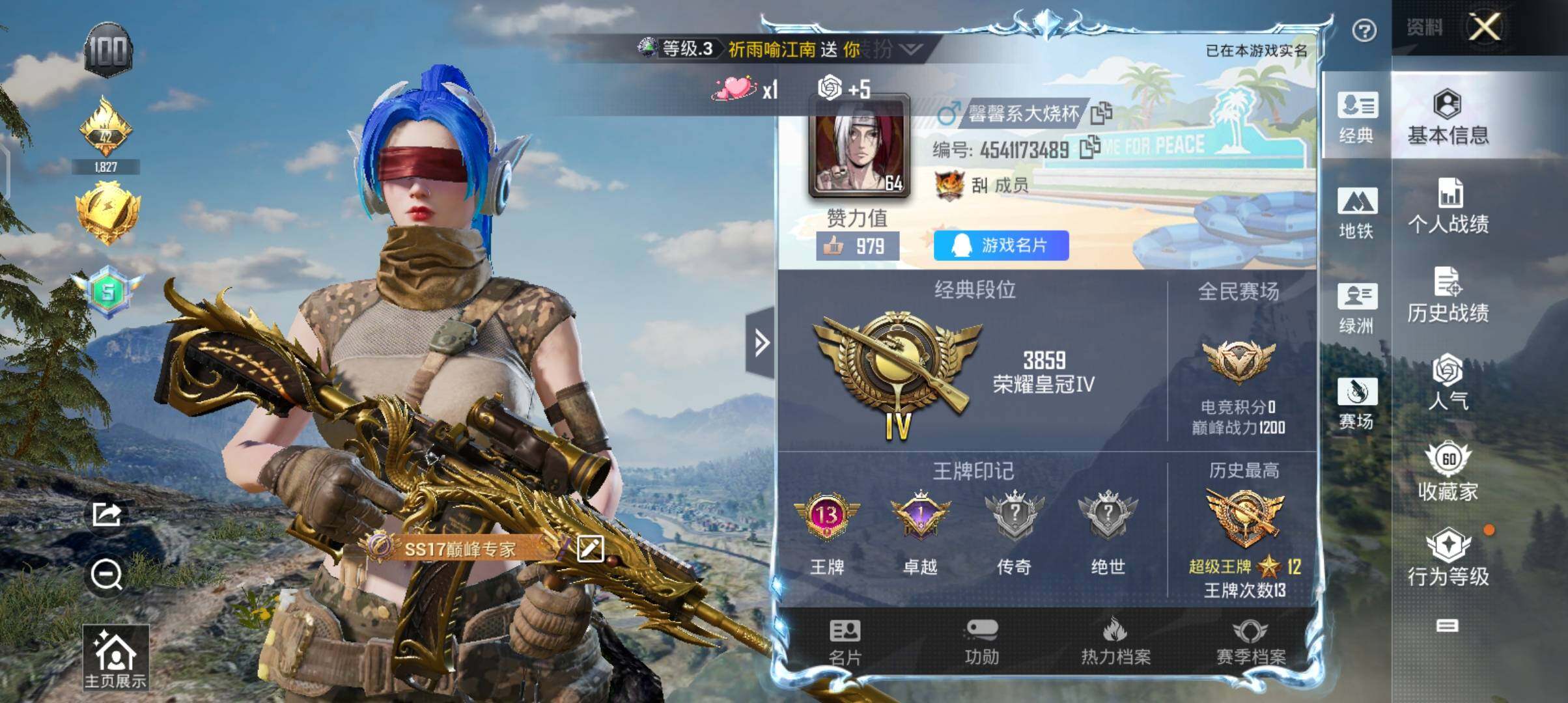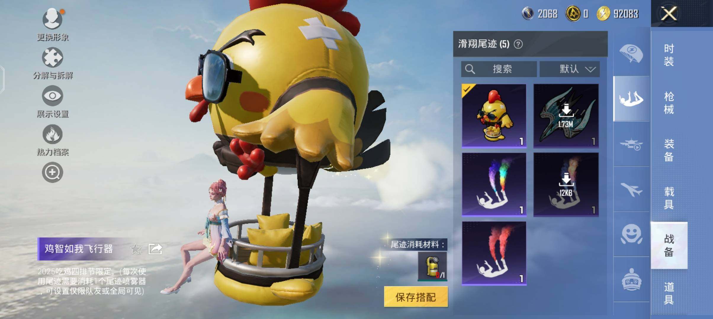4粉装-5特效枪-0载具-0粉色飞行器-59043热力值-13王牌印记-135套装-200枪皮