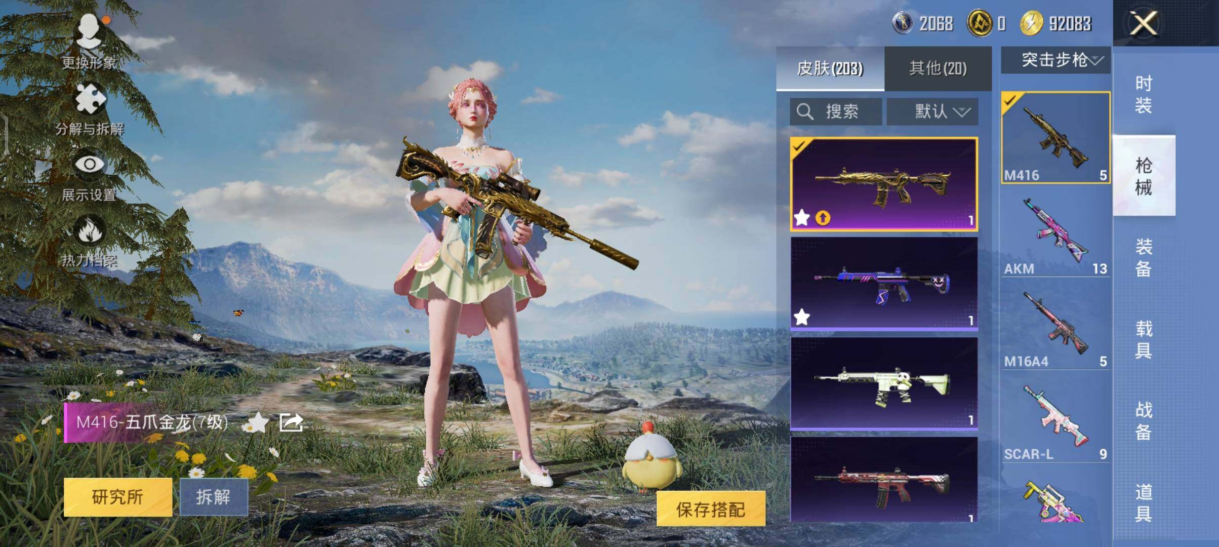【粉色枪皮等级】:AKM-炫紫旋律(七级),SCAR-L-锦绣绵绵(五级),M416-五爪金龙(七级),K