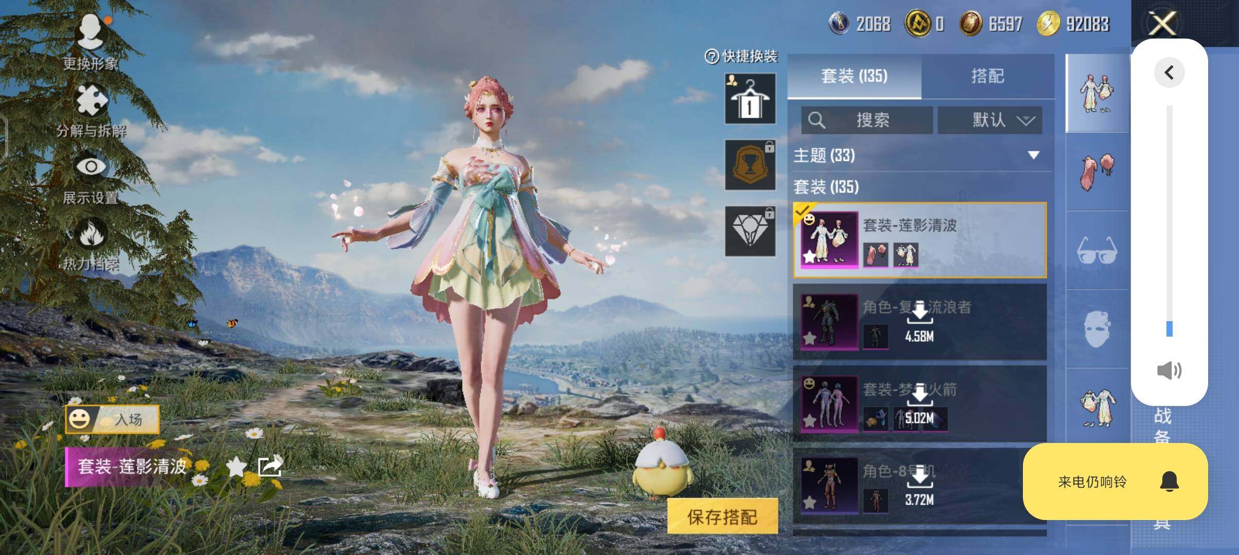 【粉色套装】:粉装-梦幻火箭,角色-复仇流浪者,粉装-莲影清波,粉装-幻彩电音