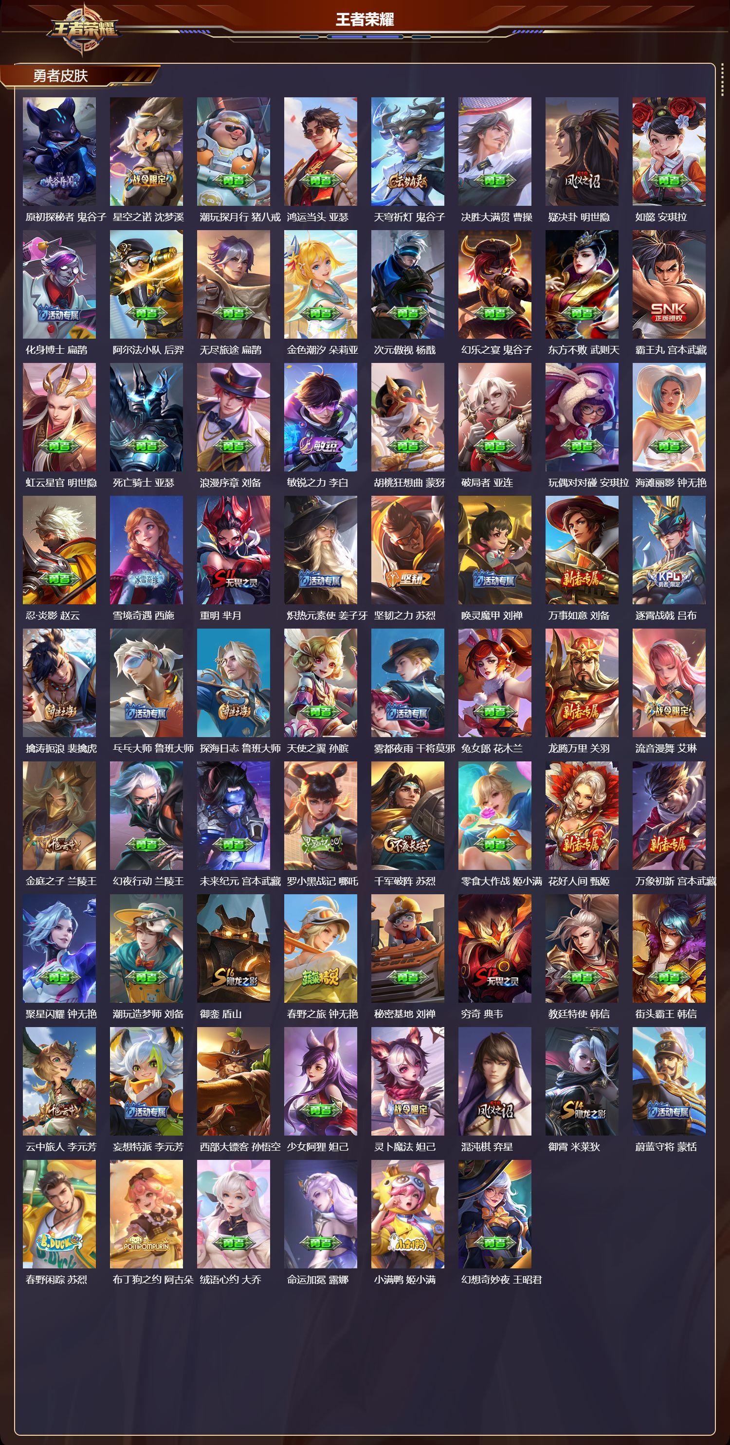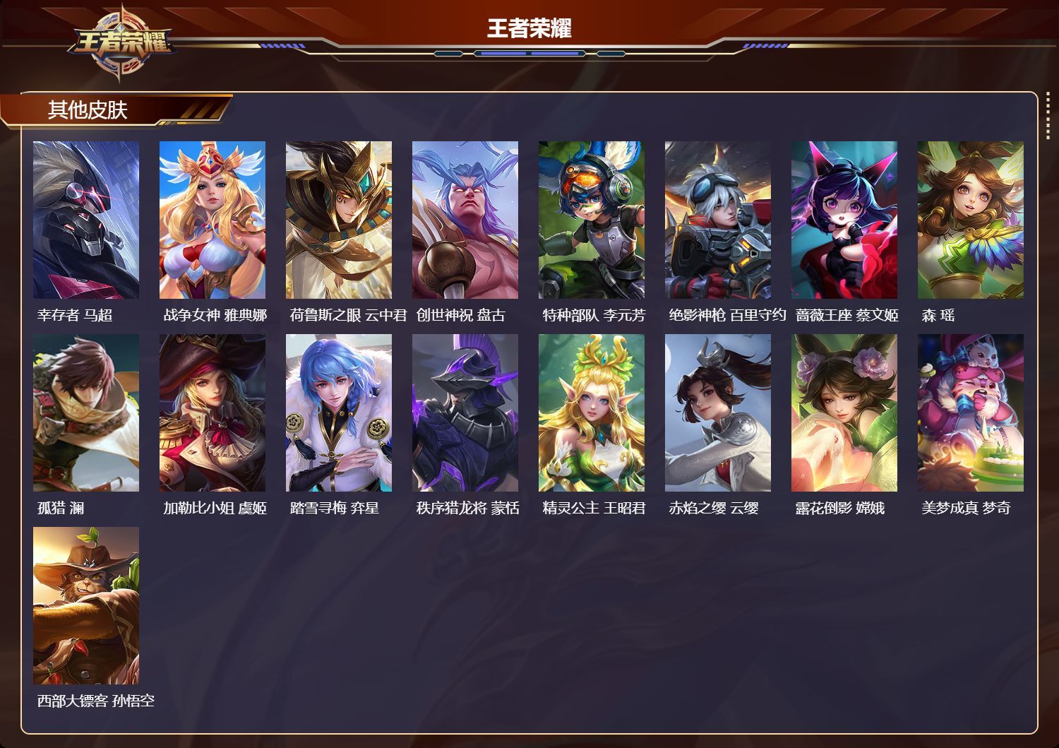 至尊星耀/298皮肤/127英雄/2典藏/17传说/73史诗/启明星使 虞姬,云霓雀翎 虞姬,逐花归