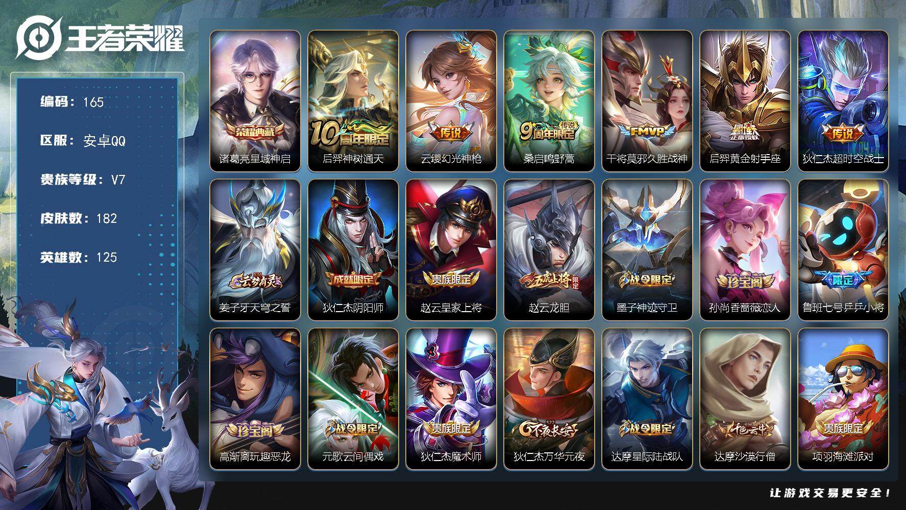 325-[14046171]可二次 贵族7 王者11星 贵族积分23630 安卓手Q305区182皮1典藏6传说0无双V7 营地ID1899245240非凡王者【荣耀典藏】:星域神启【优质限定皮肤】:神威【传说皮肤】:神树通天,久胜战神,超时空战士,黄金射手座,鸣野蒿,幻光神枪【史诗皮肤】:绅士熊喵,龙之律动,冰冠公主,鬼剑武藏,德古拉伯爵,猪悟能,蜜橘之夏,航海奇遇记,乘风破浪,偶像歌手,白龙吟,逐梦之影,天秀·启明,乒乒小将,紫霞仙子,天狼溯光者,胡桃异想国,魔术师,心灵战警,云间偶戏,水果