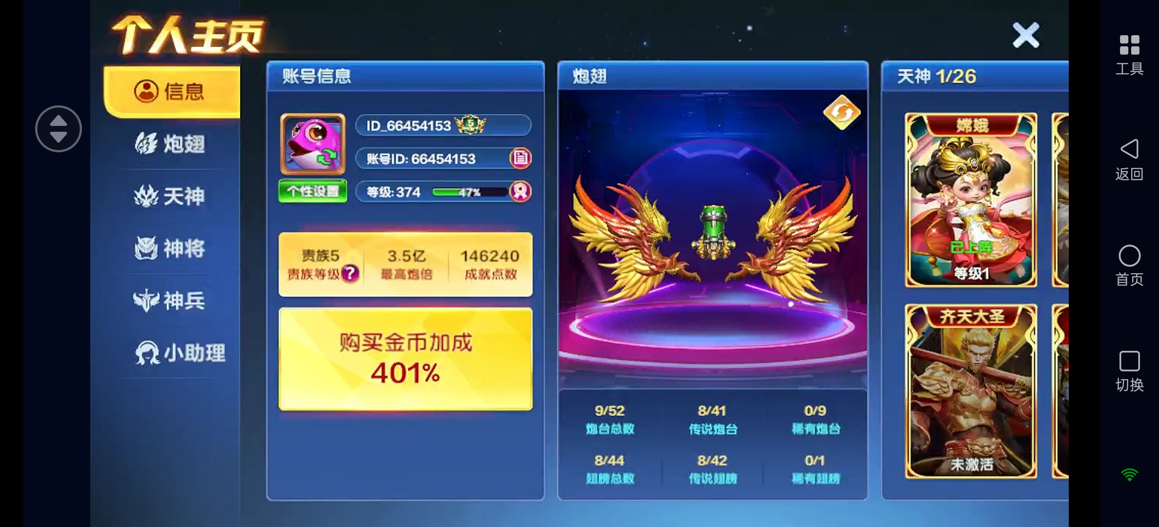 小米安卓机通用卖断7.5亿炮实炮3.5亿炮 19万亿 天神嫦娥6神将,能换绑。保证金商家安全可靠
