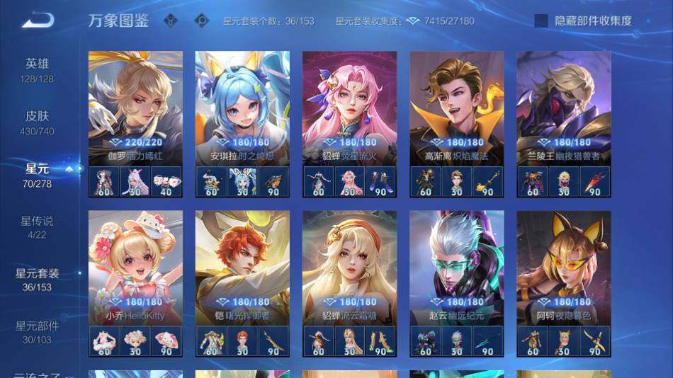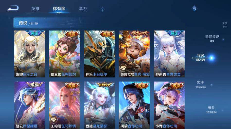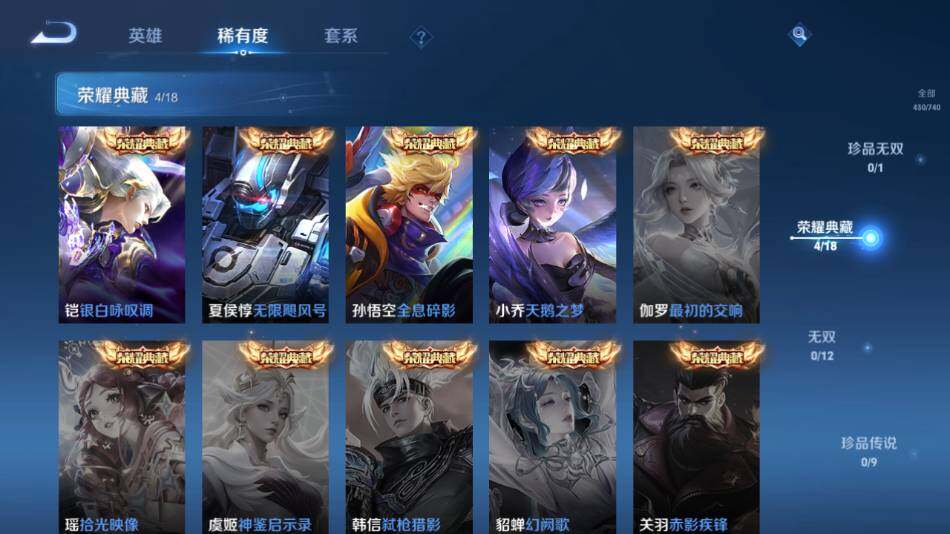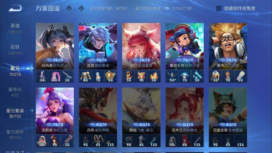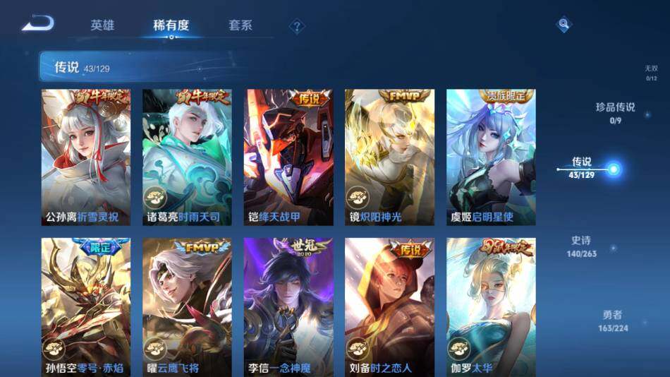 安卓WX-V10-128英雄-430皮肤-4典藏-43传说-140史