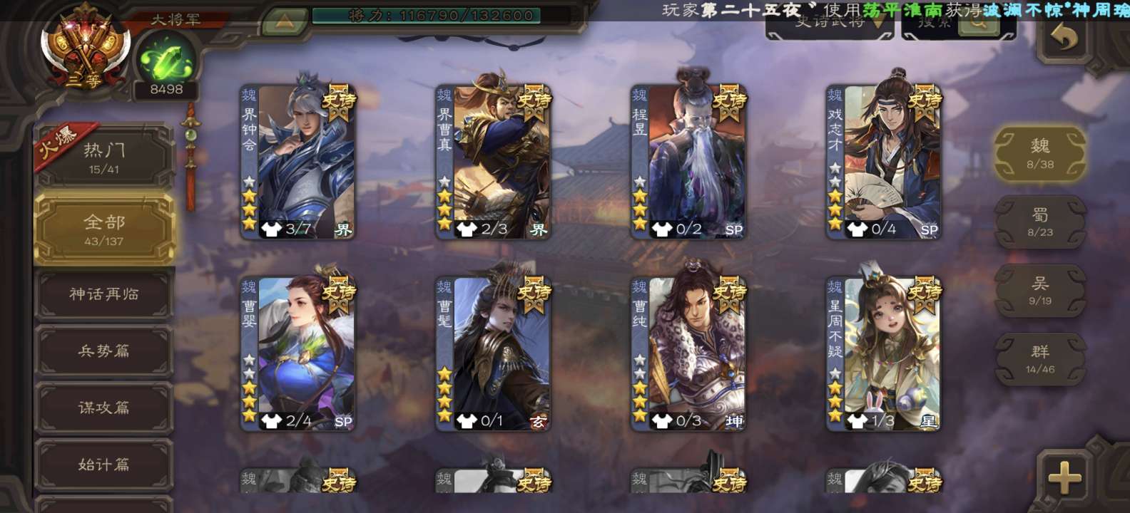 双形态神郭嘉动态神荀彧神甘宁文鸯司马昭南华老仙谋诸葛亮谋公孙瓒谋孙尚香傅芊界左慈王元姬界钟会戏志才张