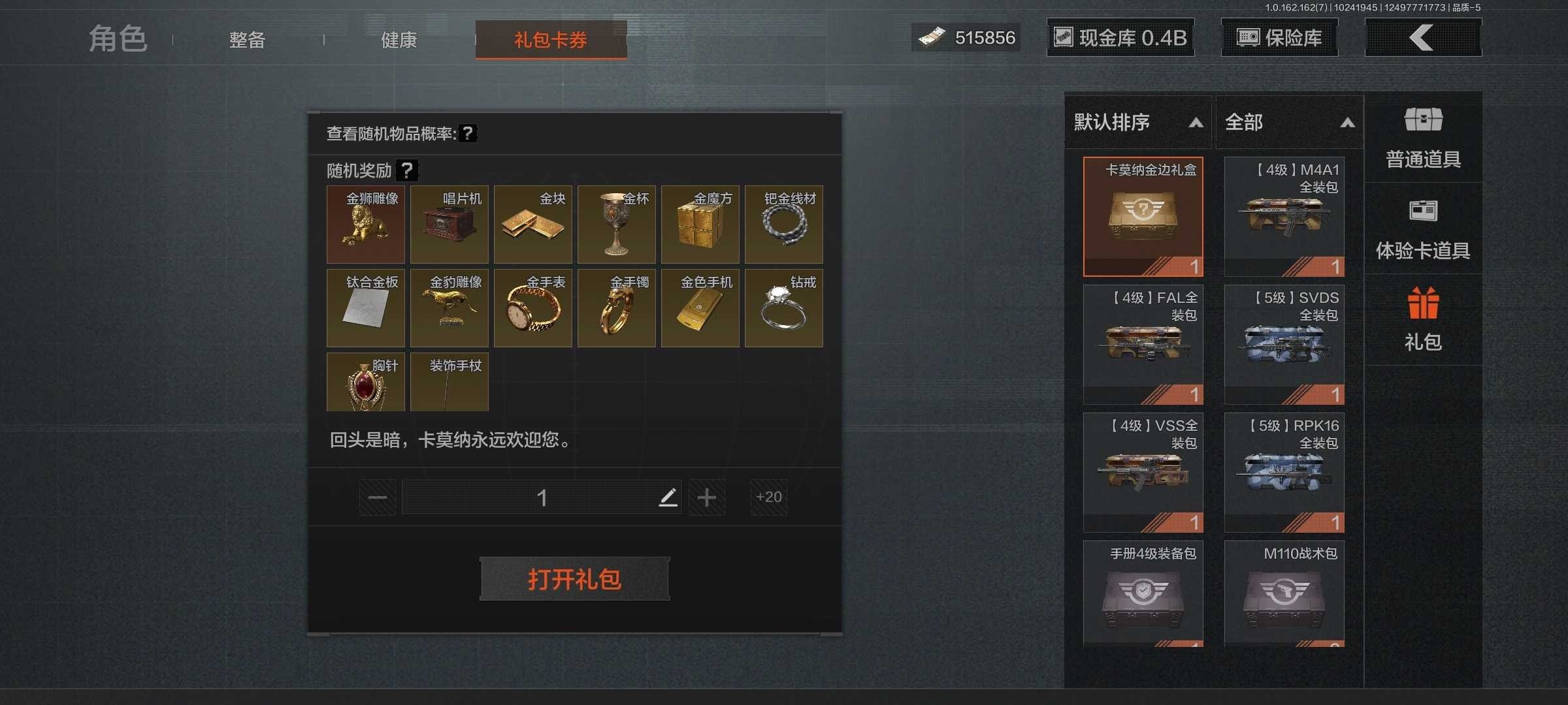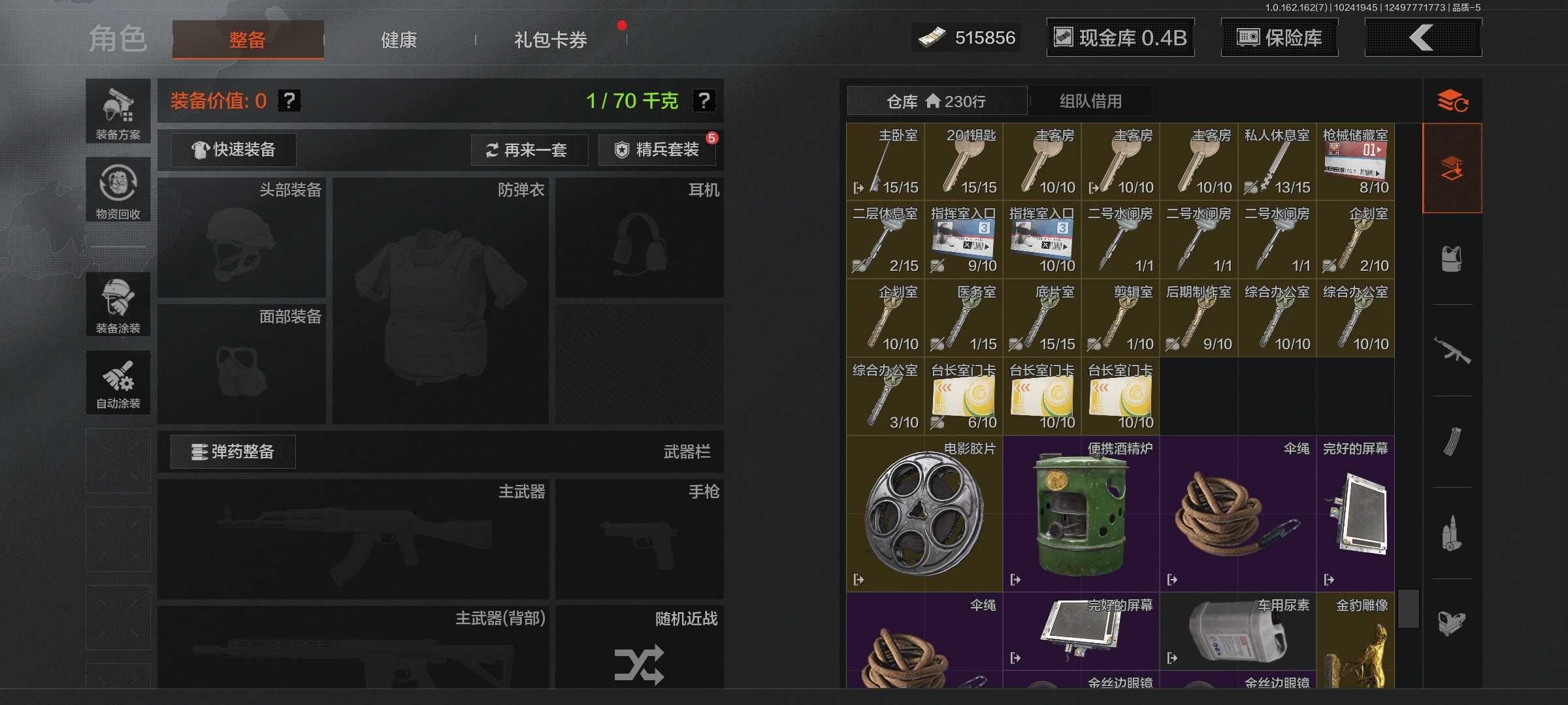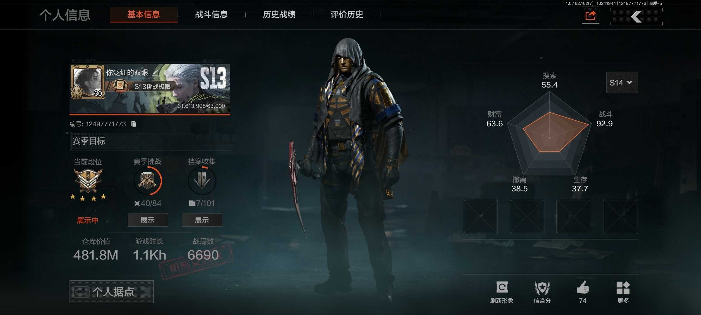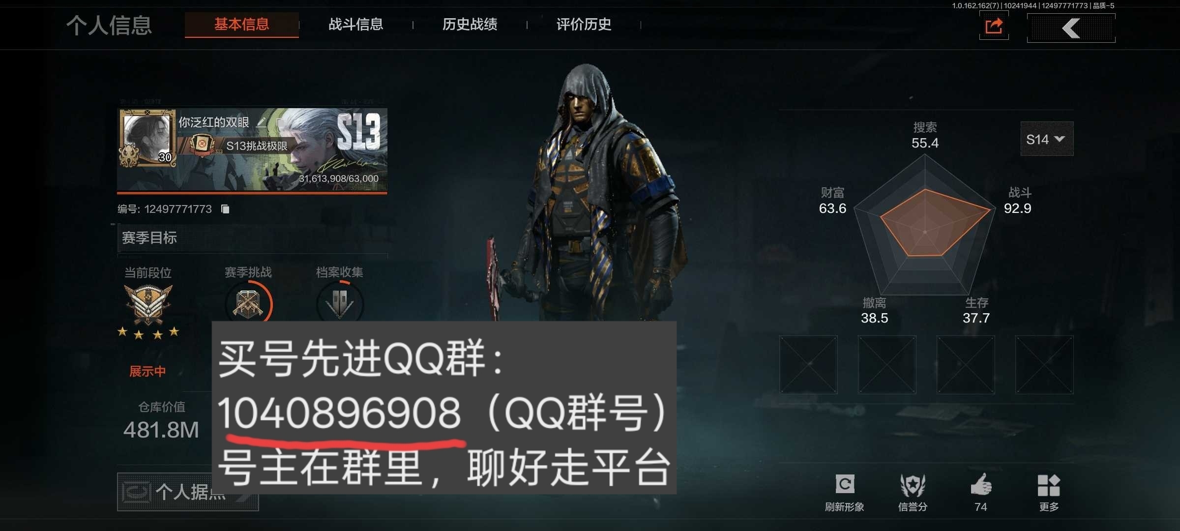 暗区突围【安卓QQ】库存价值481M 3手套 18近战 11橙套装 6金套装 0橙枪 12金枪 王牌