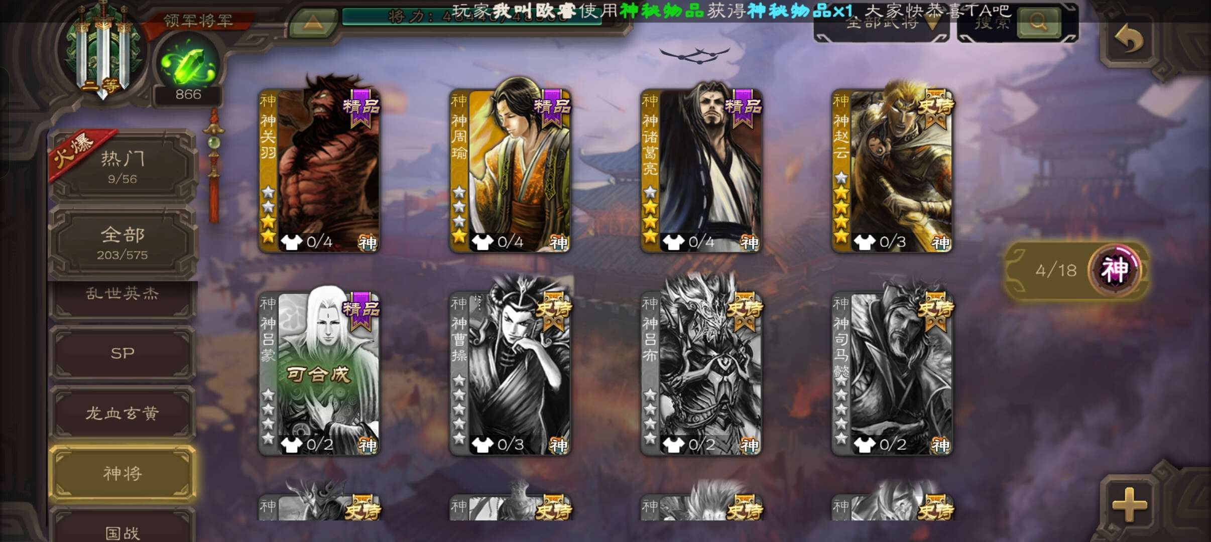 捡漏领军玉龙动司马昭/神赵云/周处/界钟会11史诗+19宝珠(准大宝)无限点将