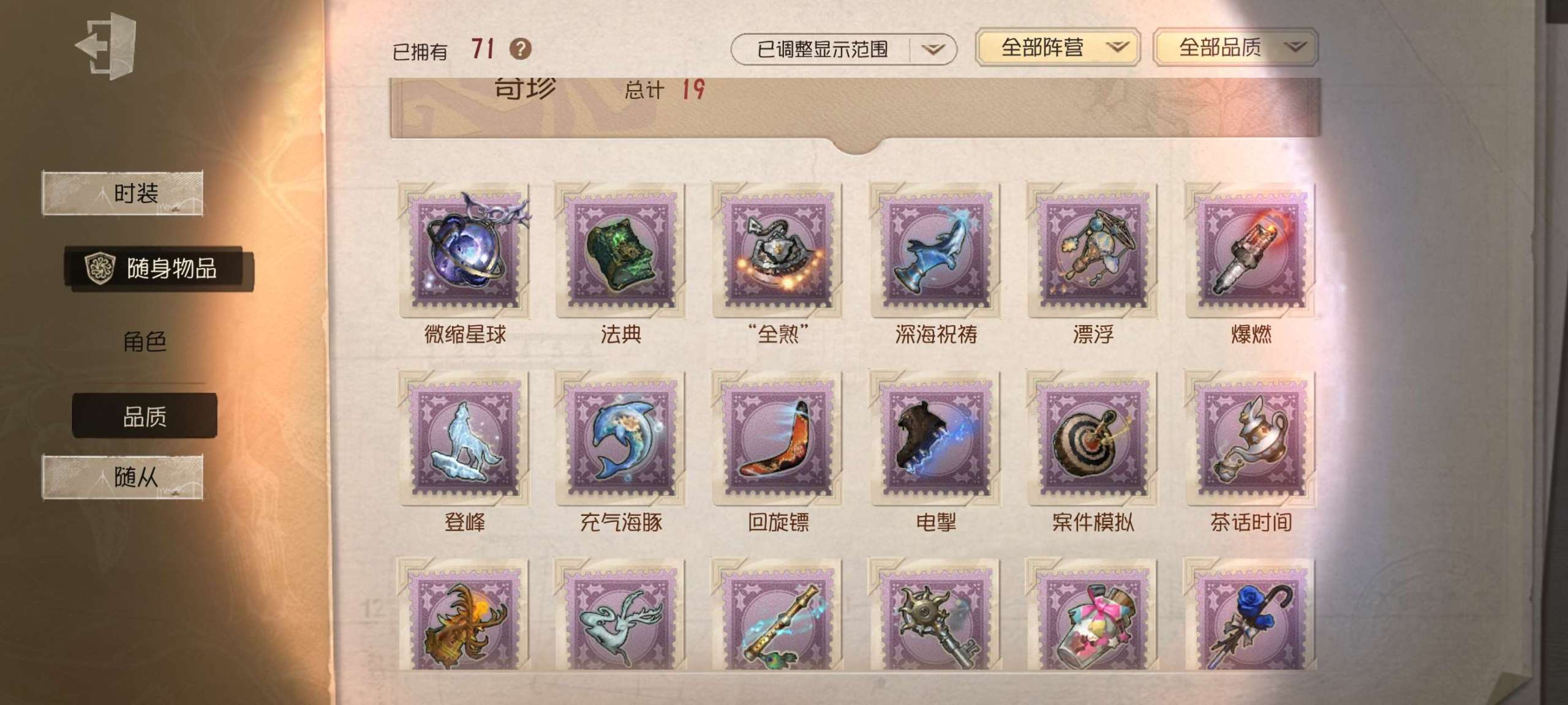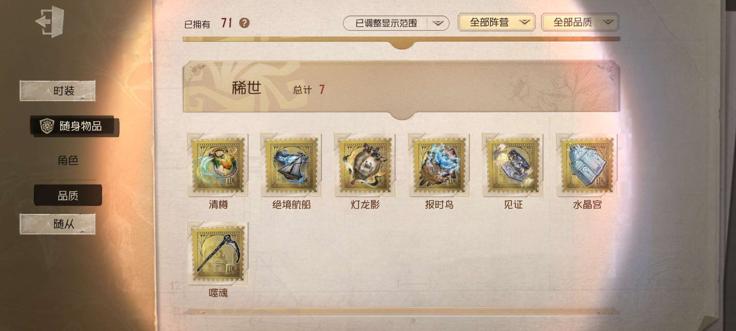随身物品数量: