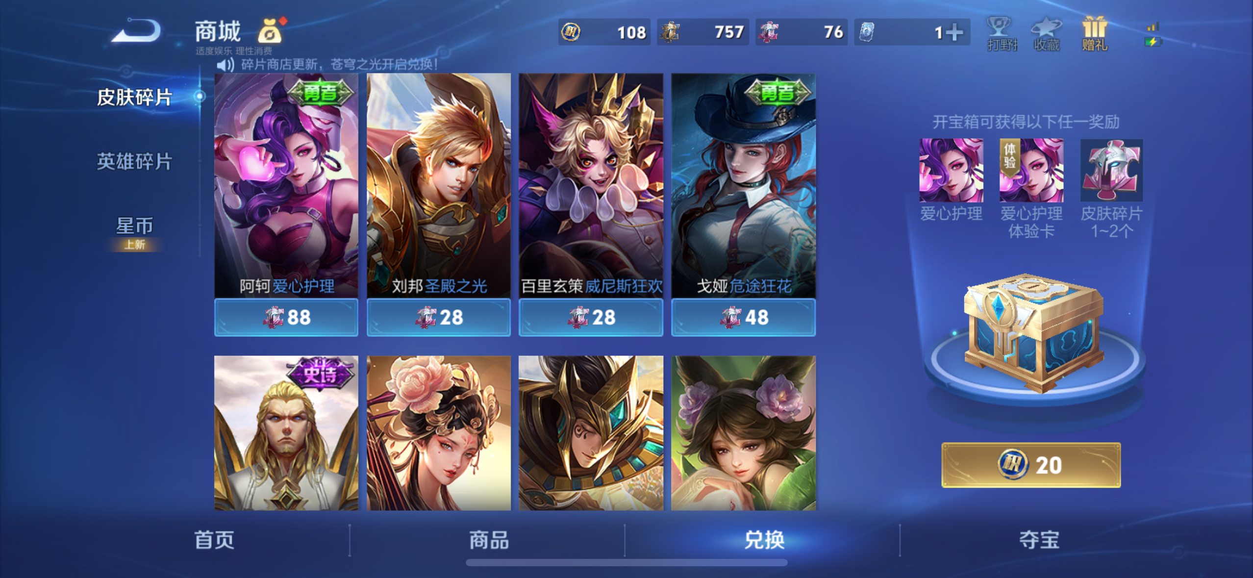 全英雄,有一颗荣耀水晶,一珍品传说,19传说,还有一个天幕